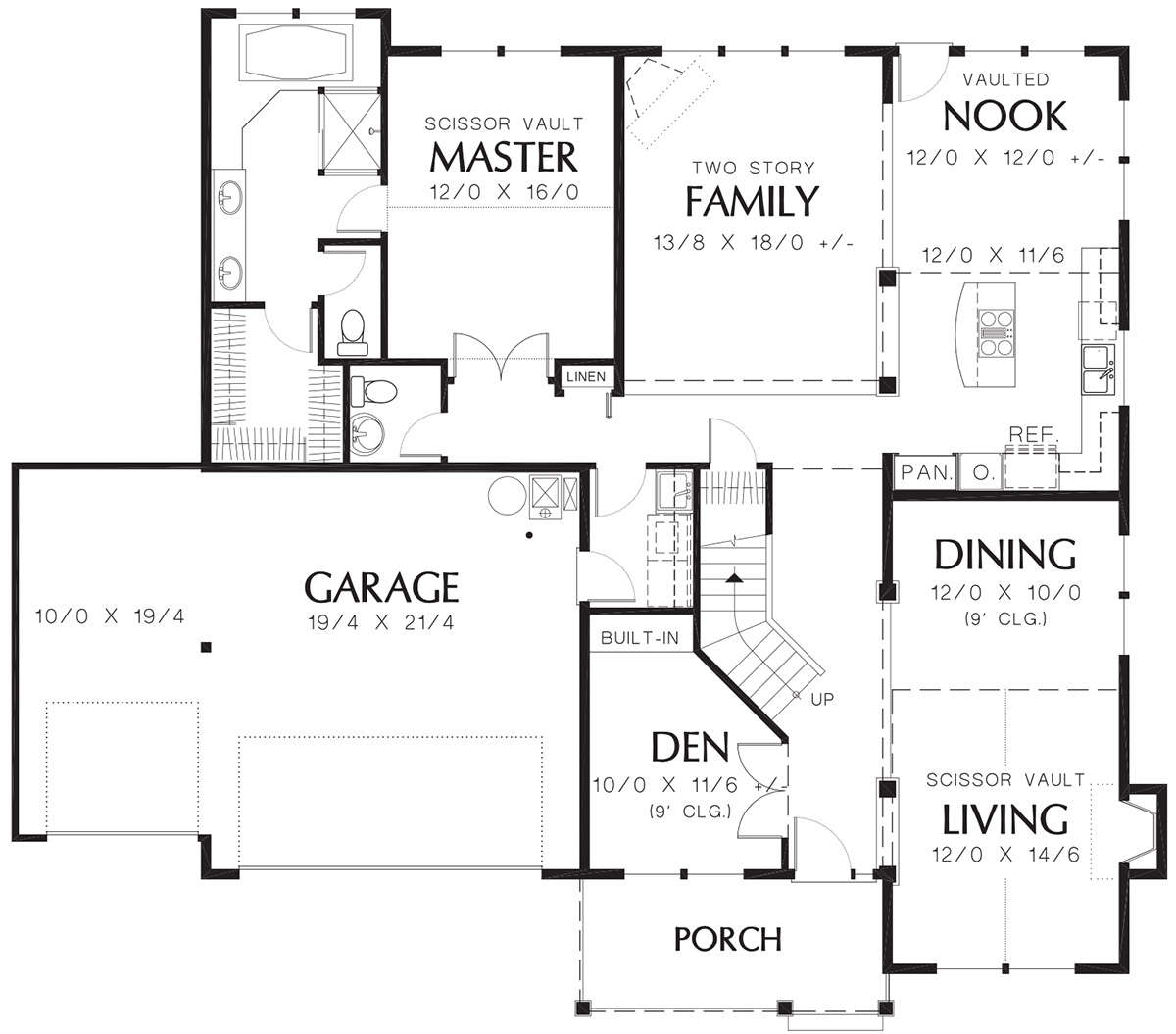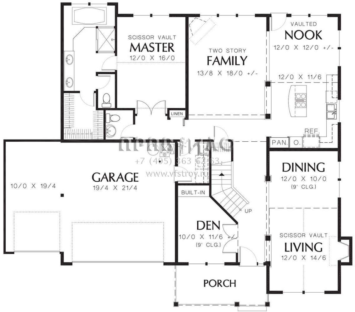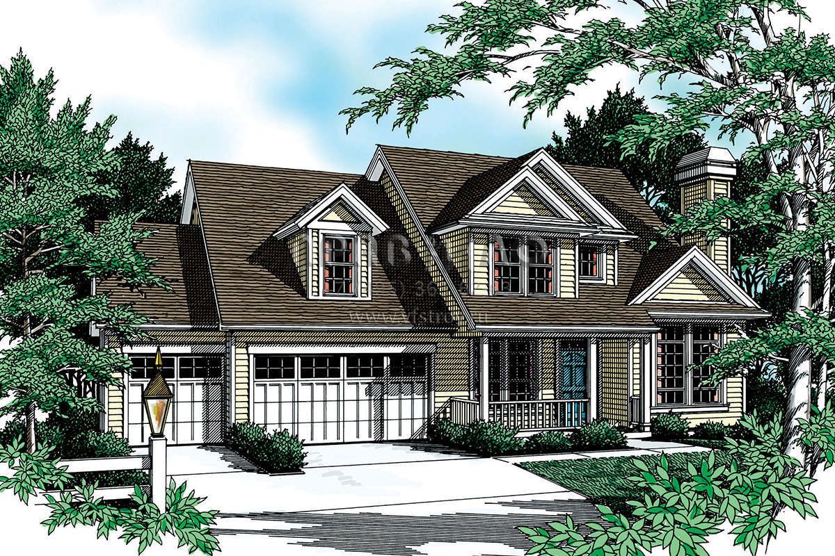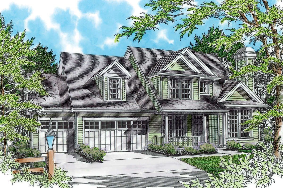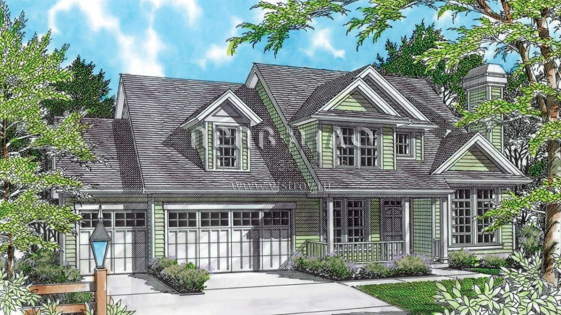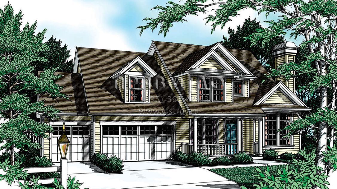 Проект двухэтажного дома с гаражом на три и более машин в стиле Ранчо S5-222 (2559-00487)