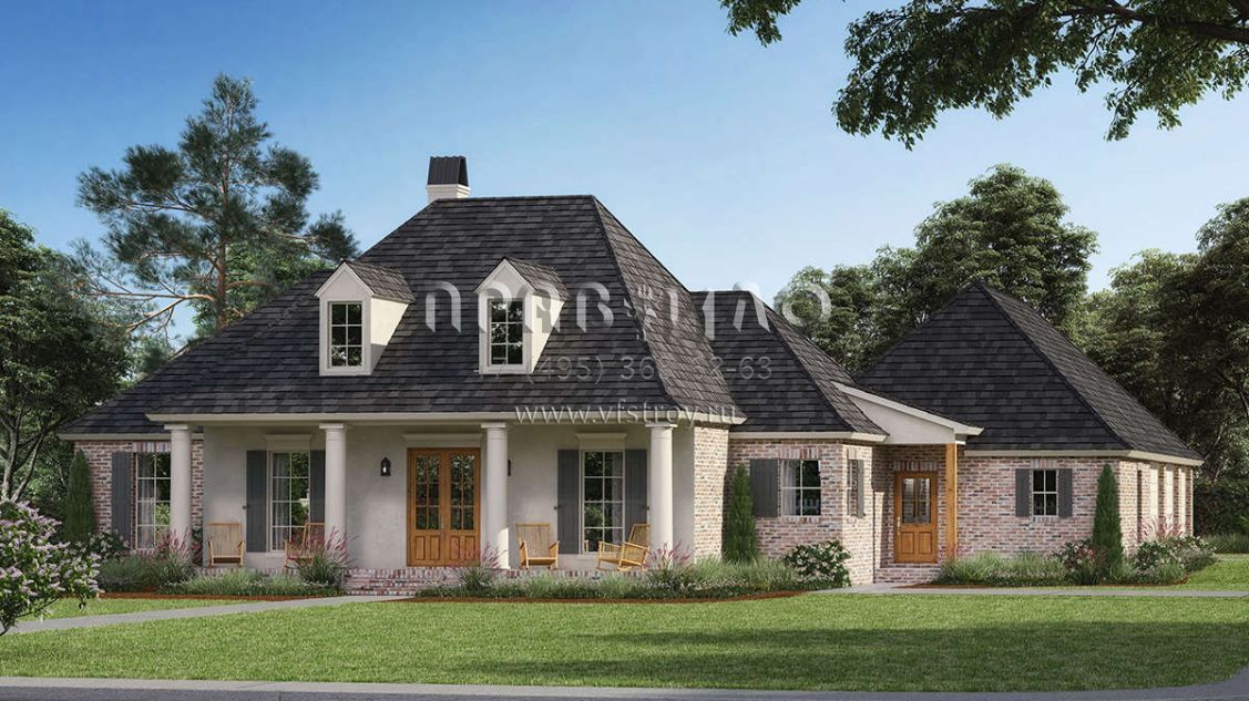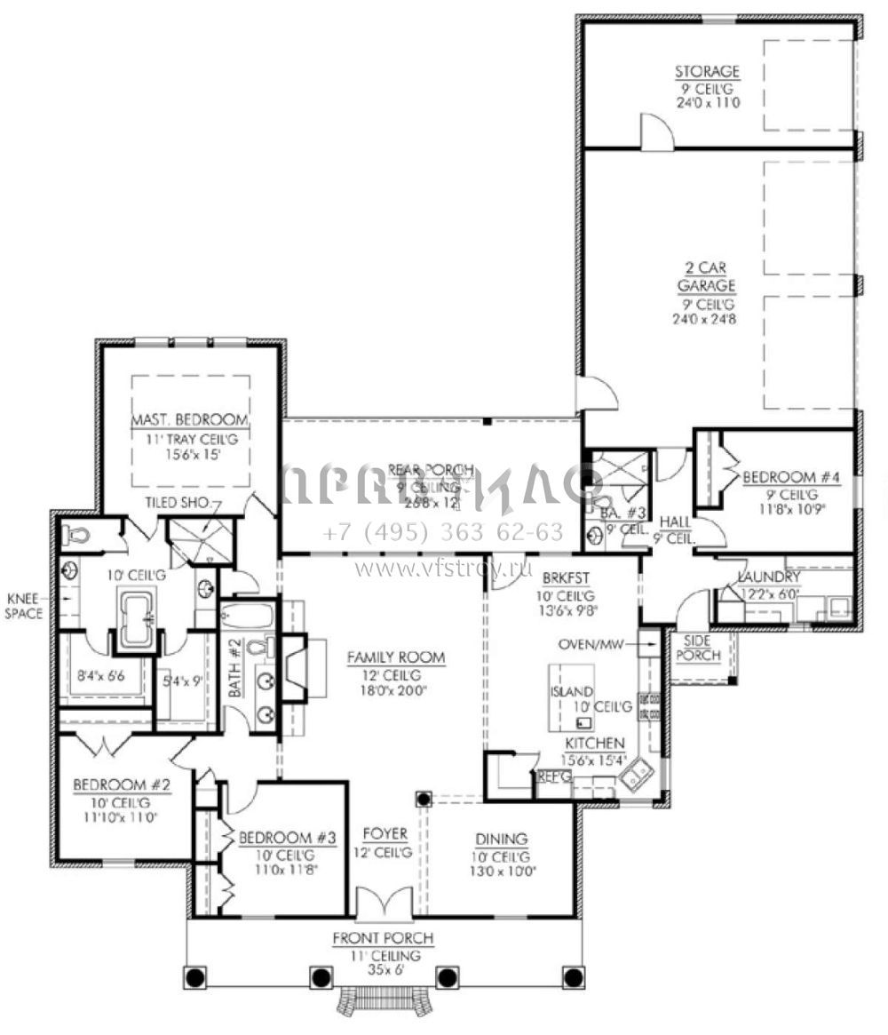 Проект одноэтажного дома с гаражом на три и более машин в стиле Ранчо S5-222 (4534-00005)