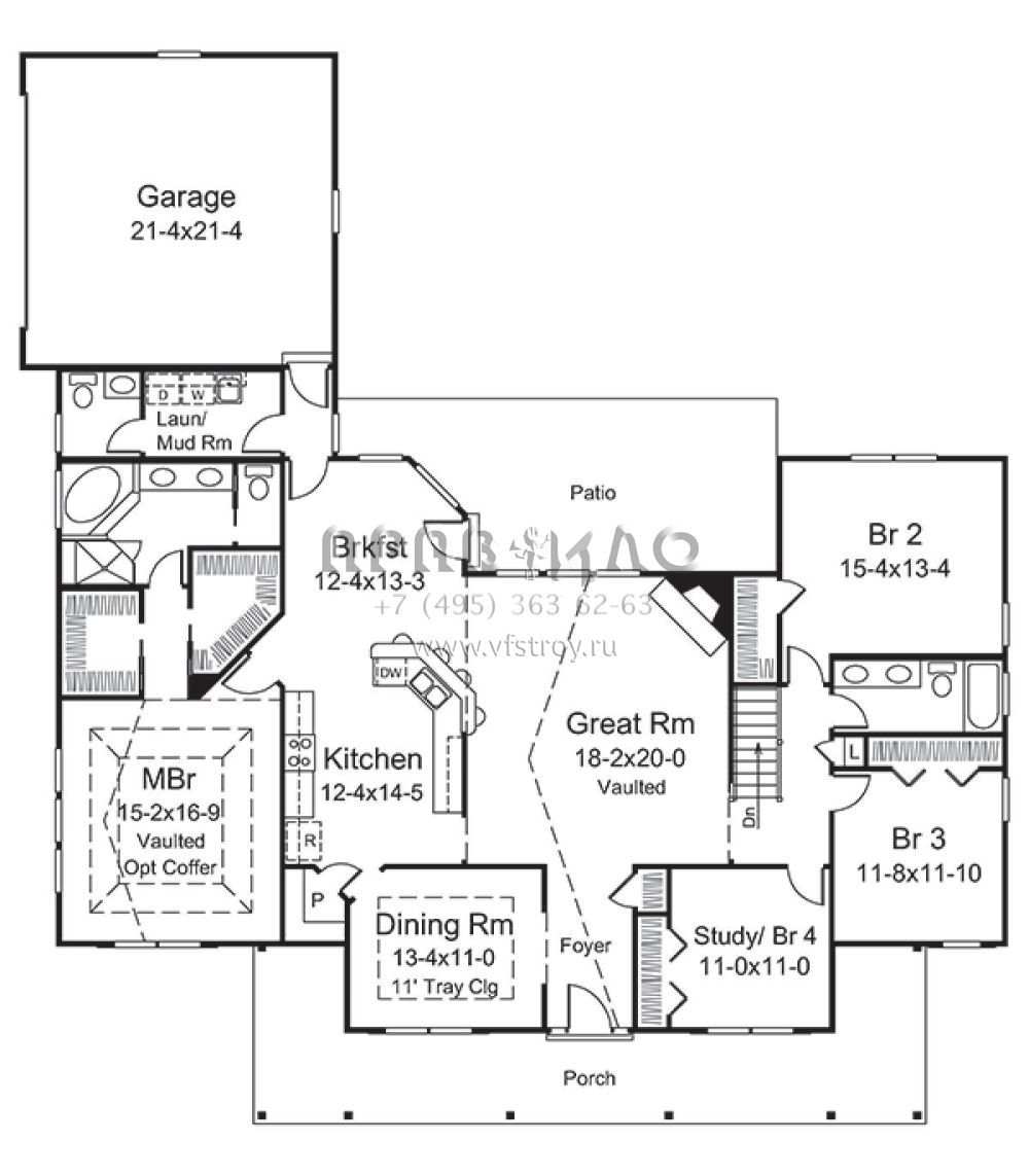 Проект одноэтажного дома с гаражом на две машины в классическом стиле S5-222 (5633-00273)