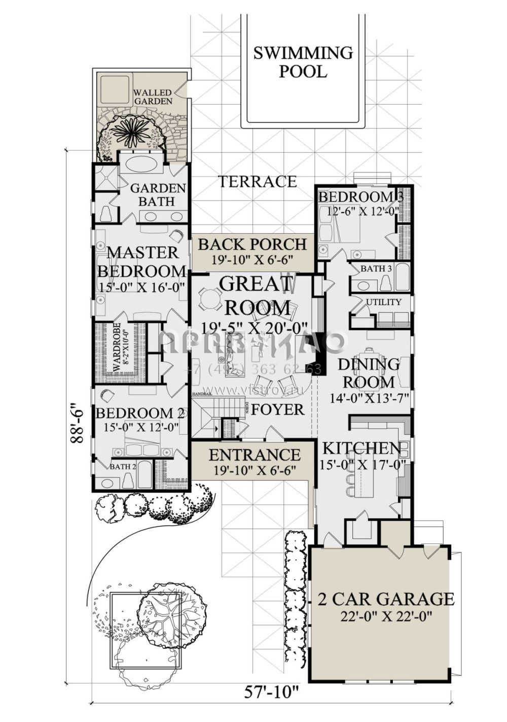 Проект одноэтажного дома с гаражом на две машины в современном стиле S5-222 (7922-00238)