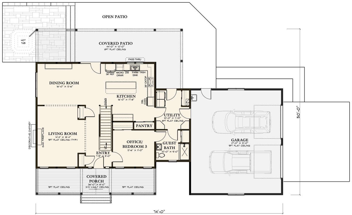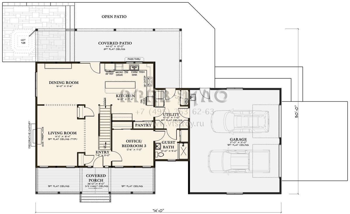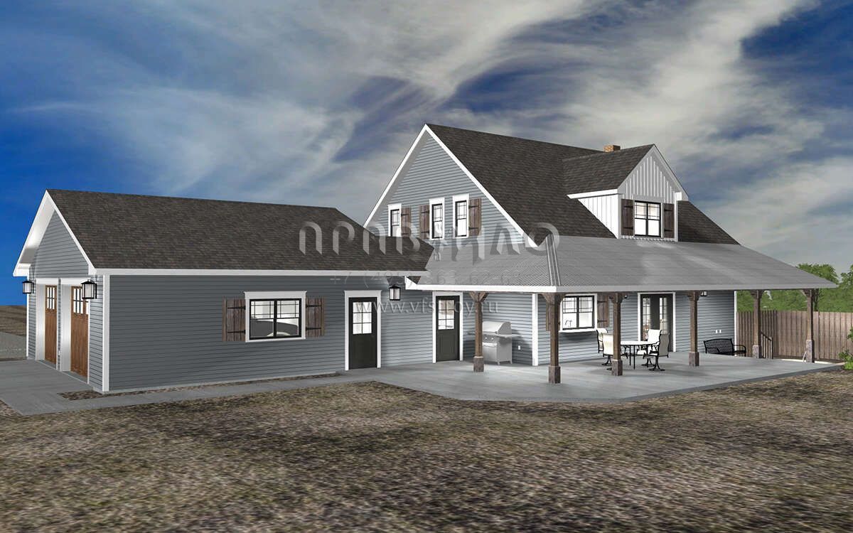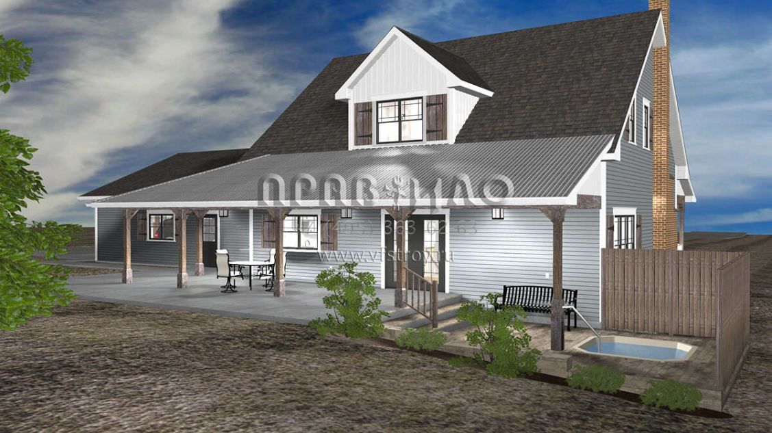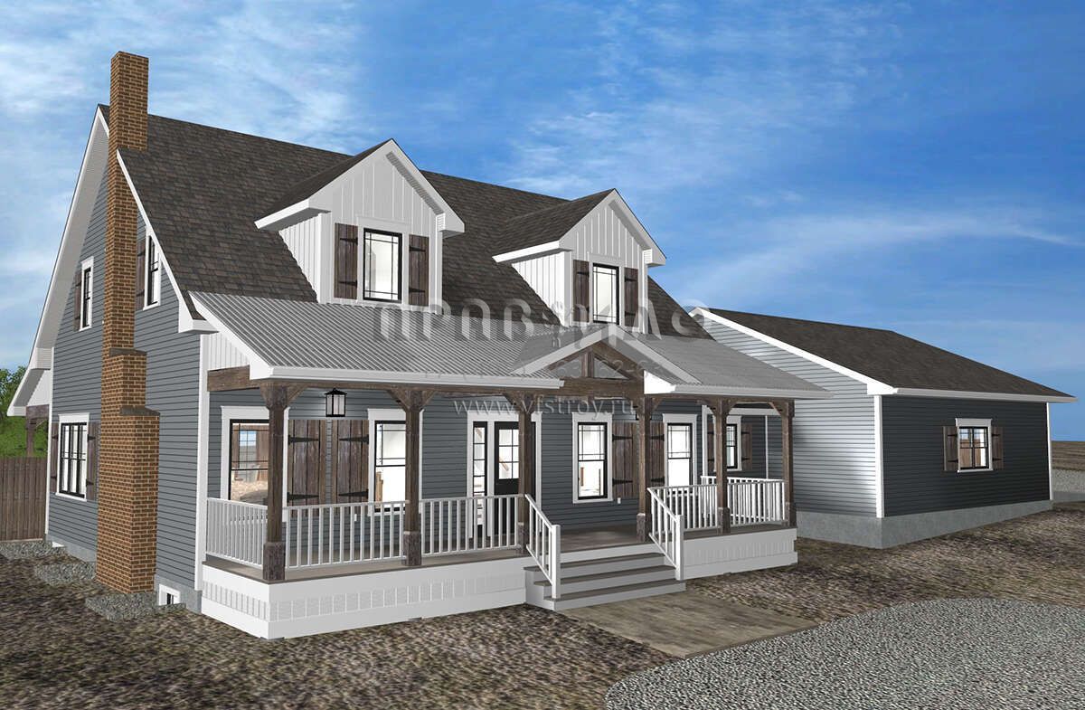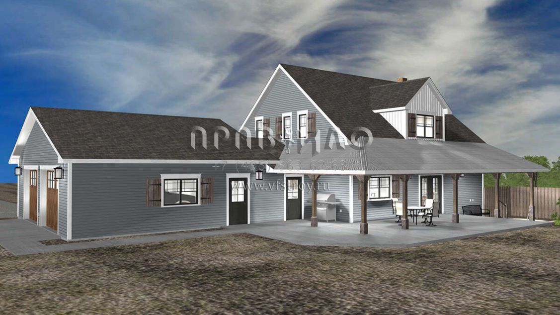 Проект двухэтажного дома с гаражом на две машины в стиле Ранчо S5-222 (8387-00002)