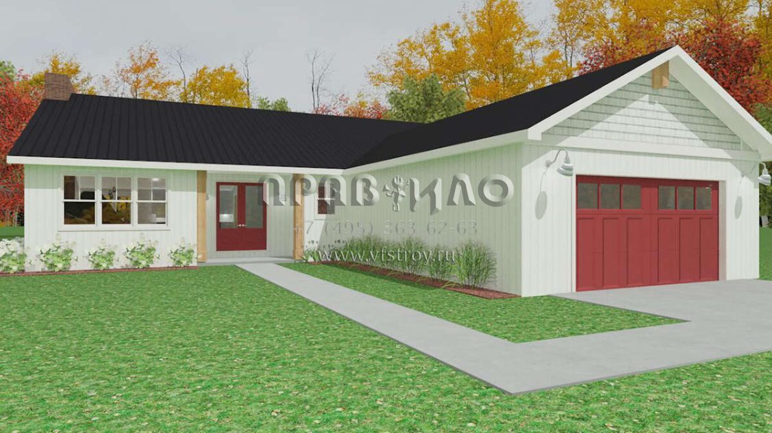 Проект одноэтажного дома с гаражом на две машины в стиле Ранчо S5-223 (1462-00020)