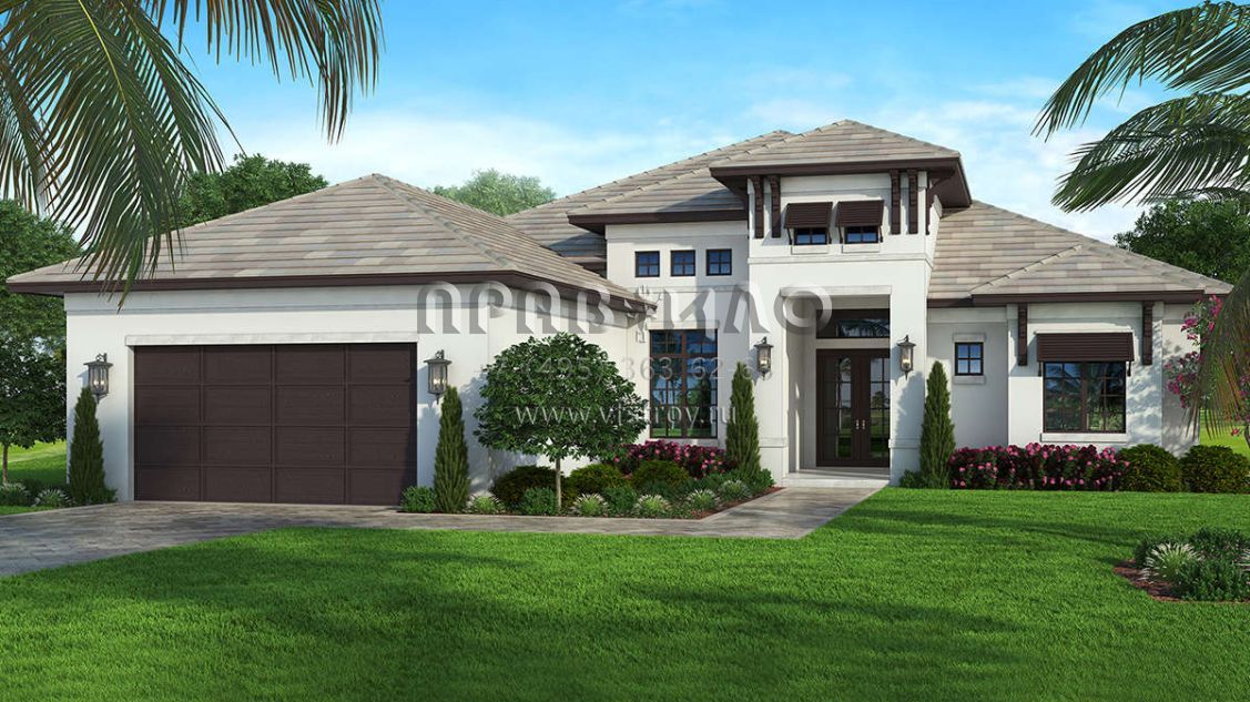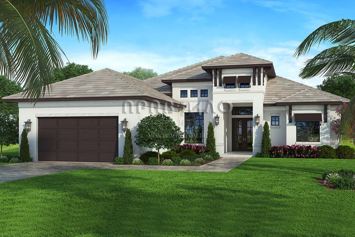 Проект одноэтажного дома с гаражом на две машины в прибрежном стиле S5-223 (207-00082)