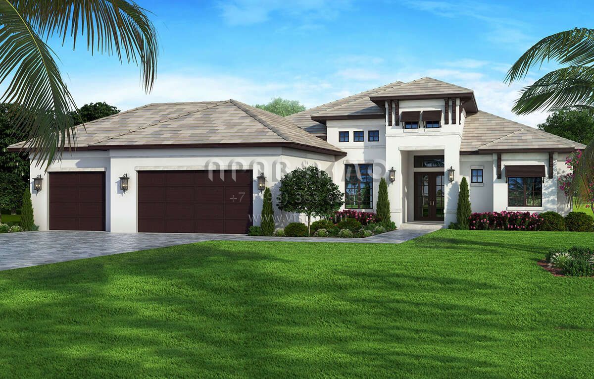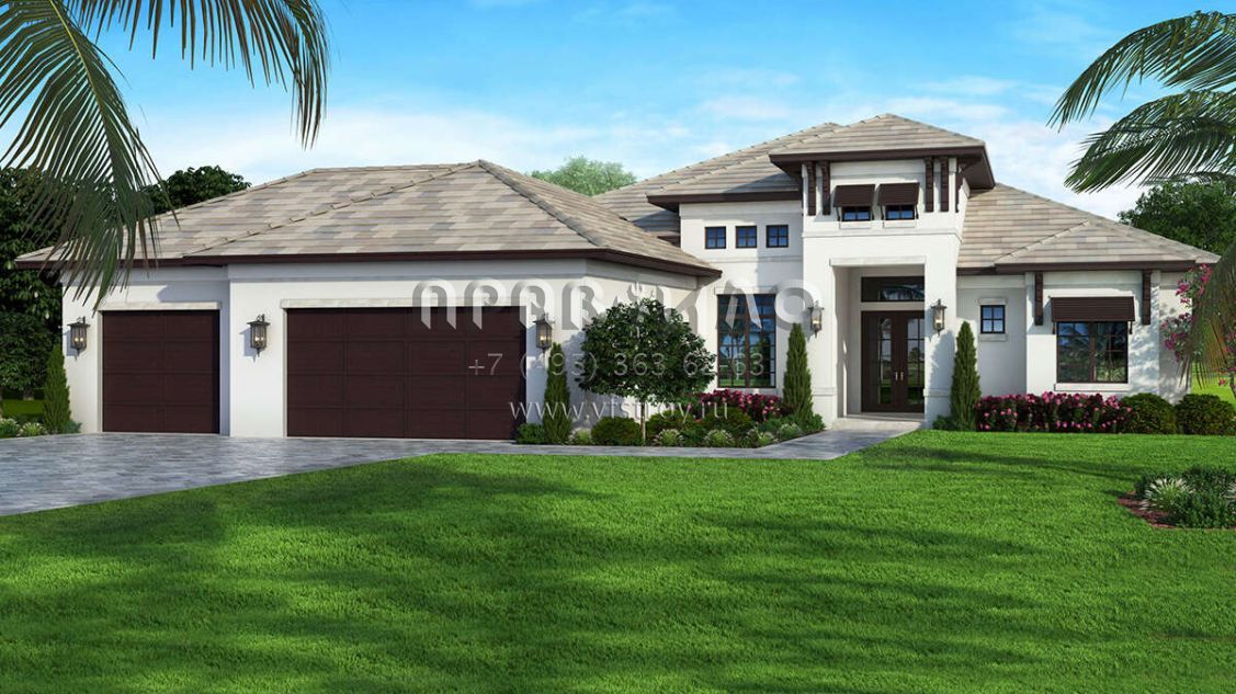 Проект одноэтажного дома с гаражом на три и более машин в современном стиле S5-223 (207-00140)