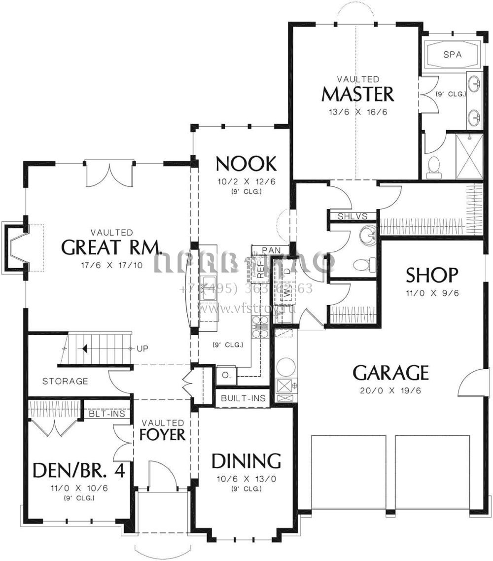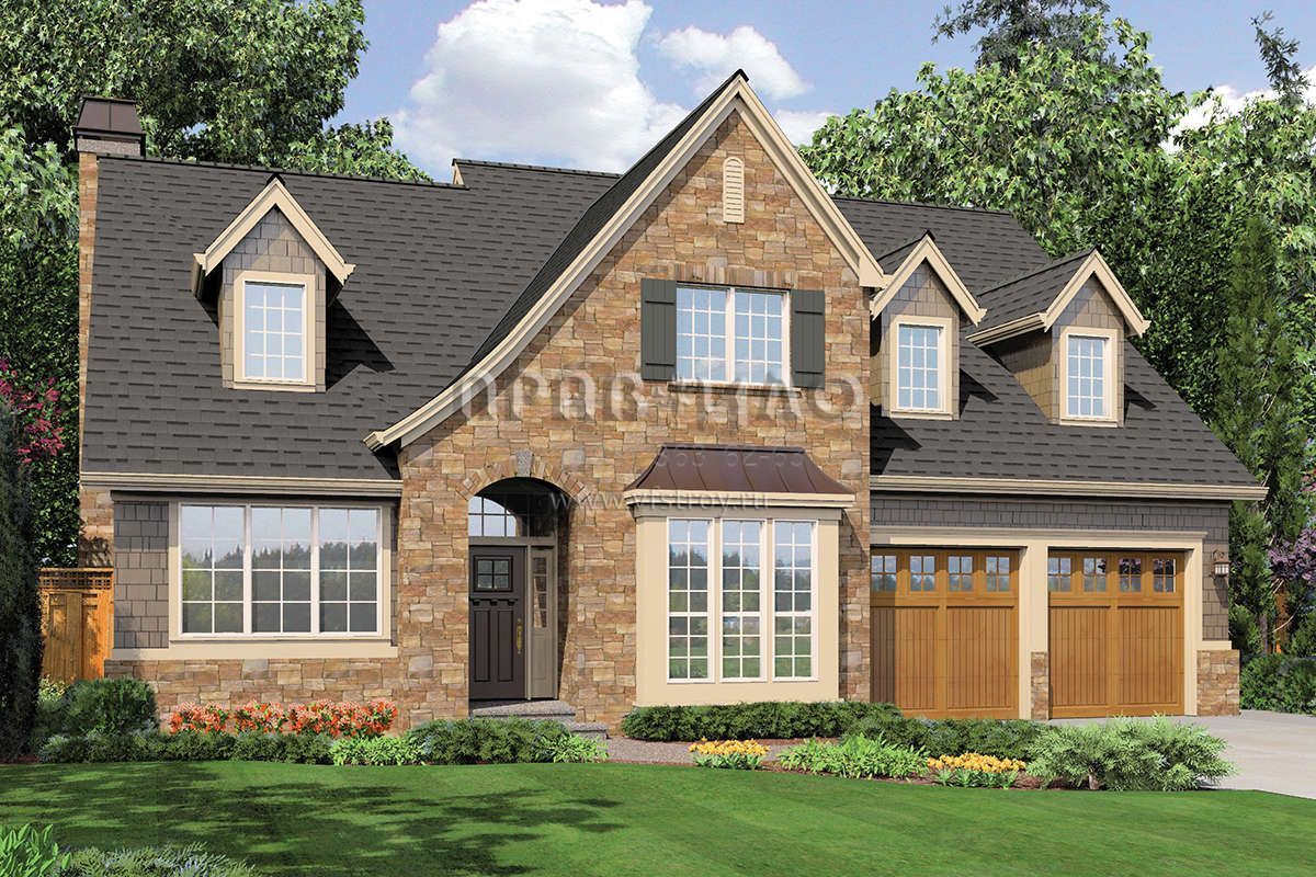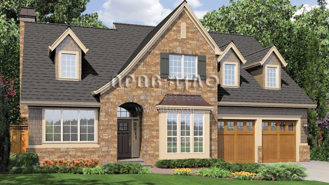 Проект двухэтажного дома с гаражом на две машины в стиле Ранчо S5-223 (2559-00326)