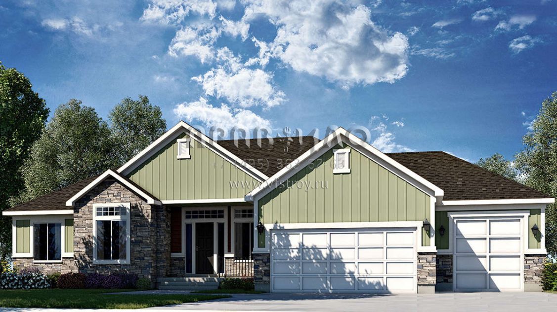 Проект одноэтажного дома с гаражом на три и более машин в американском стиле S5-223 (7306-00006)