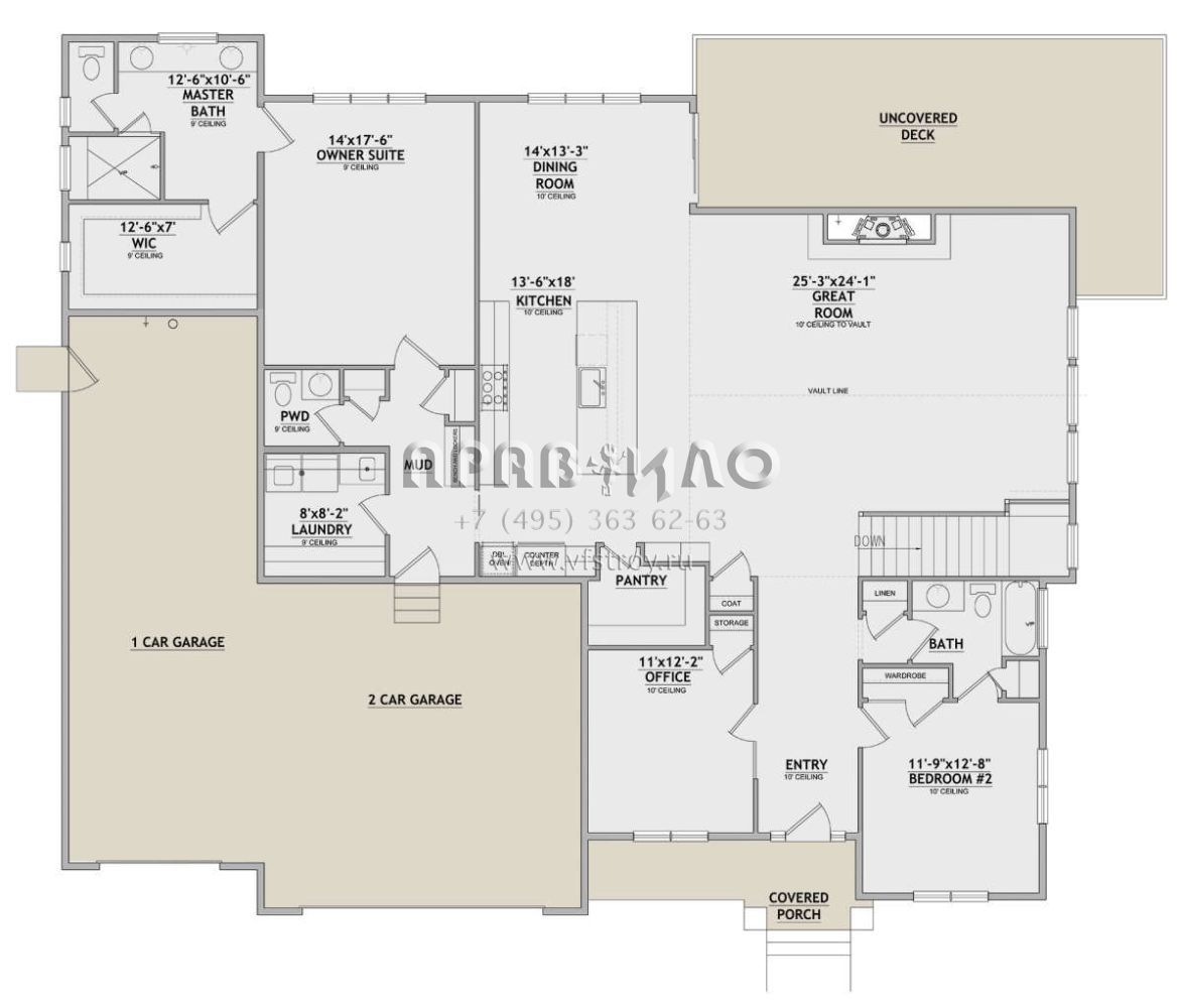 Проект одноэтажного дома с гаражом на три и более машин в американском стиле S5-223 (8768-00037)