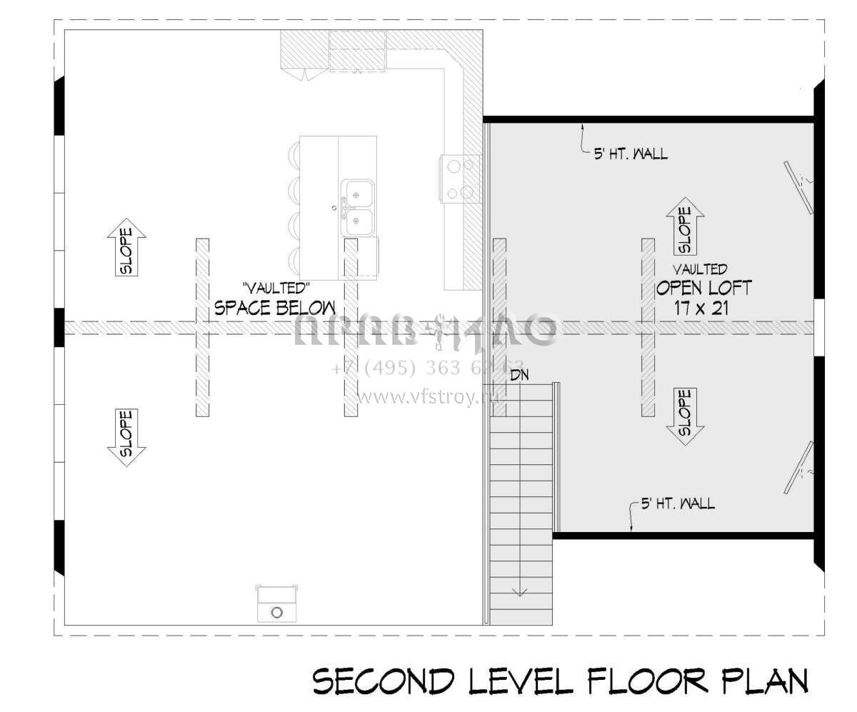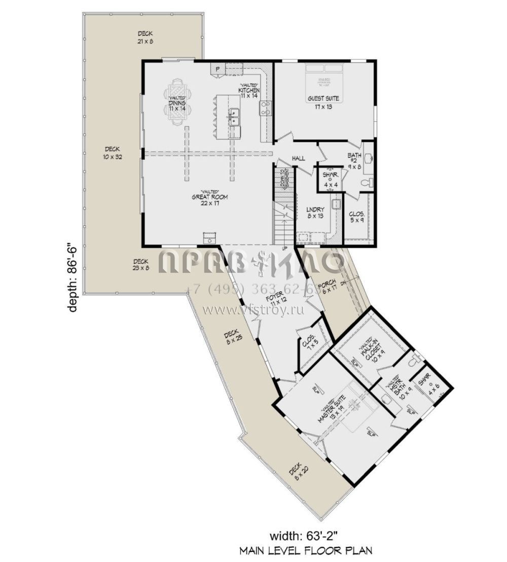 S5-223 (940-00768) Это иностранный проект, для которого требуется адаптация под нормы, действующие в Российской Федерации. Вы видите проект дома в стиле Шале. В этом доме сочетаются черты сельской постройки и аскетичность лофта. Внутри жильцы смогут проводить время с максимальным комфортом. Обратим внимание, что сейчас на планировках все размеры представлены в футах. Для перевода в метры вам необходимо значение в футах умножить на 0,3048.