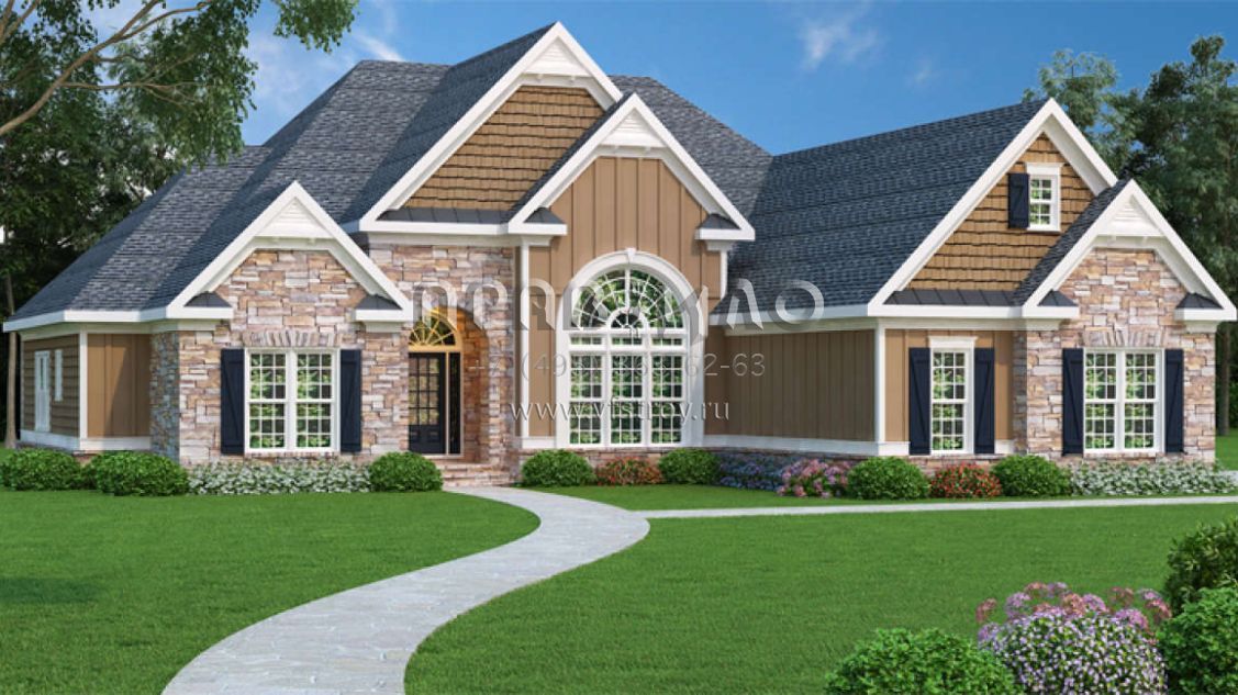 Проект одноэтажного дома с гаражом на две машины в стиле Ранчо S5-224 (009-00040)