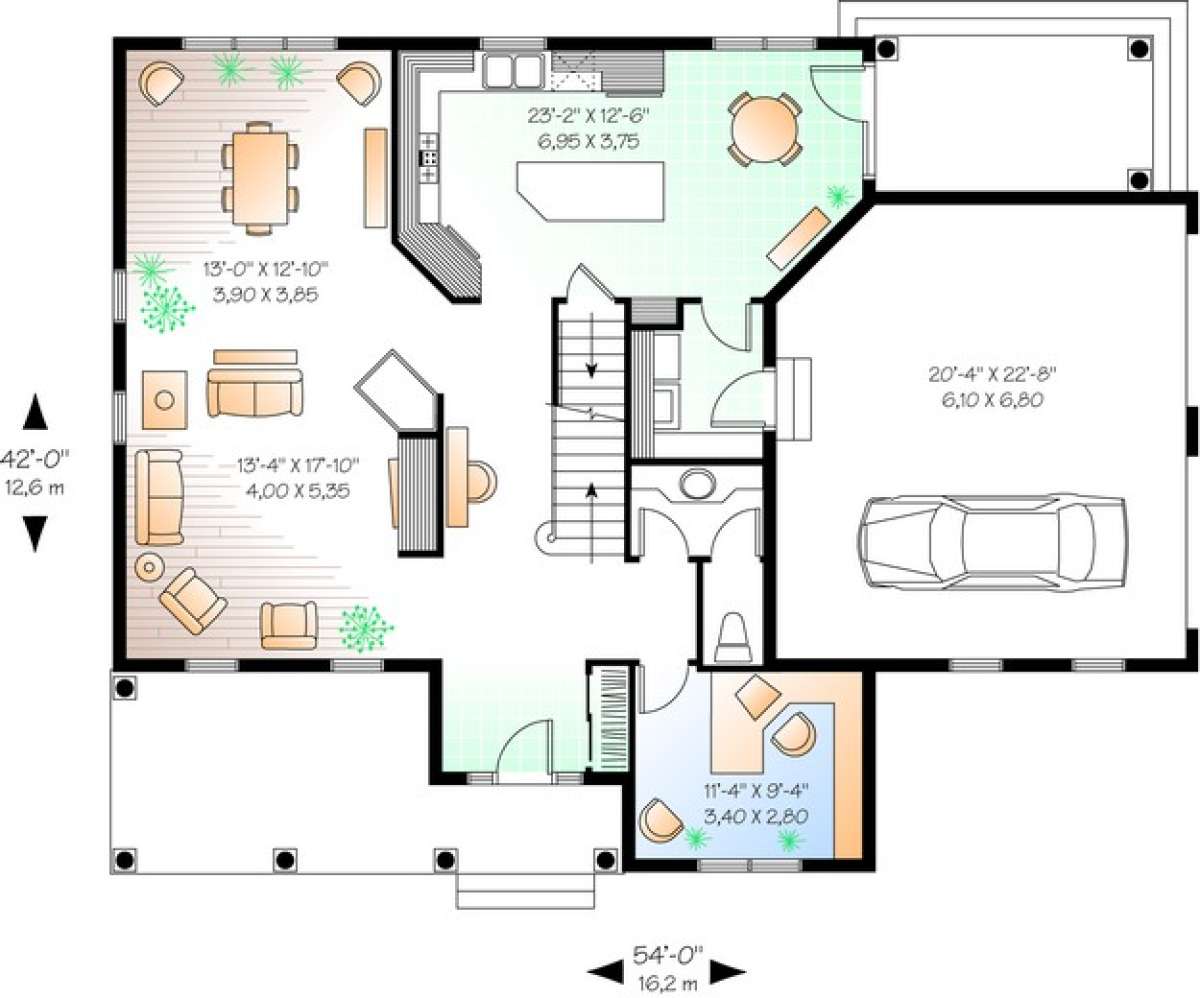 Проект двухэтажного дома с гаражом на две машины в стиле Ранчо S5-224 (034-00395)
