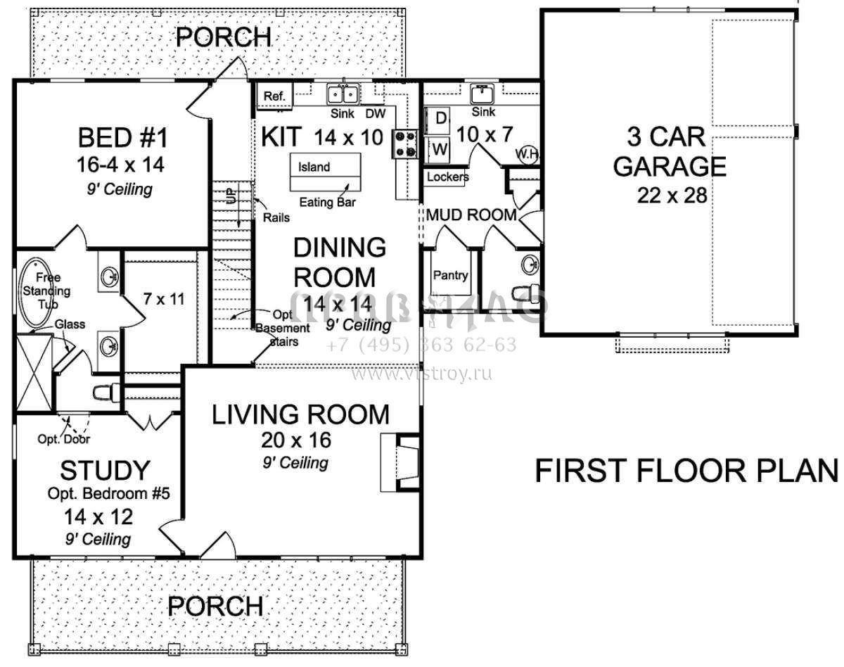 S5-224 (4848-00350) Это иностранный проект, для которого требуется адаптация под нормы, действующие в Российской Федерации. Вы видите проект дома в американском стиле. В этом доме сочетаются черты сельской постройки и аскетичность лофта. Внутри жильцы смогут проводить время с максимальным комфортом. Обратим внимание, что сейчас на планировках все размеры представлены в футах. Для перевода в метры вам необходимо значение в футах умножить на 0,3048.