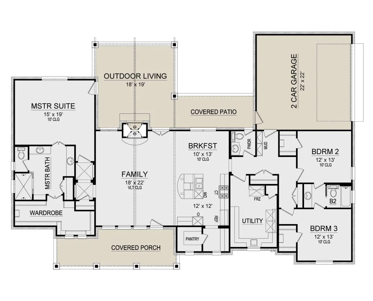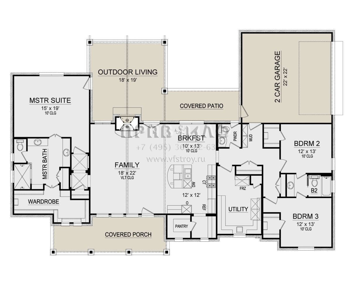 Проект одноэтажного дома с гаражом на две машины в американском стиле S5-224 (5445-00430)