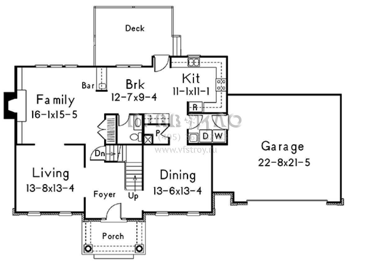 S5-224 (5633-00222) Это иностранный проект, для которого требуется адаптация под нормы, действующие в Российской Федерации. Вы видите проект дома в стиле Ранчо. В этом доме сочетаются черты сельской постройки и аскетичность лофта. Внутри жильцы смогут проводить время с максимальным комфортом. Обратим внимание, что сейчас на планировках все размеры представлены в футах. Для перевода в метры вам необходимо значение в футах умножить на 0,3048.