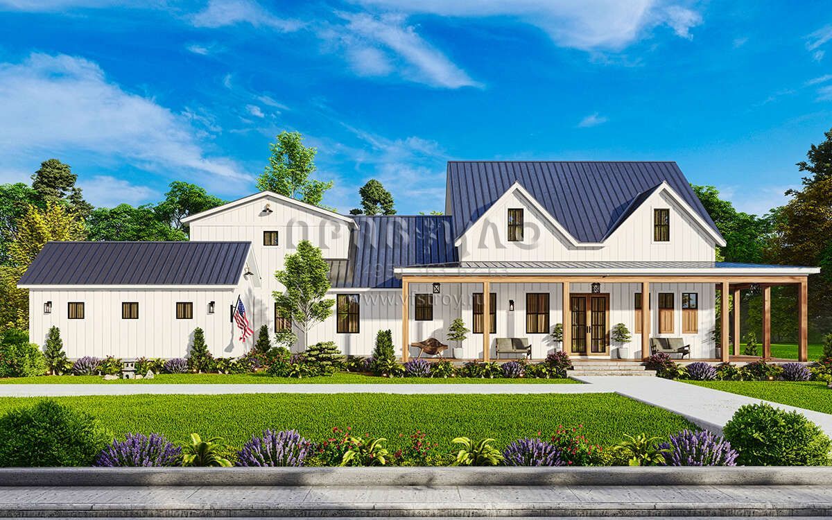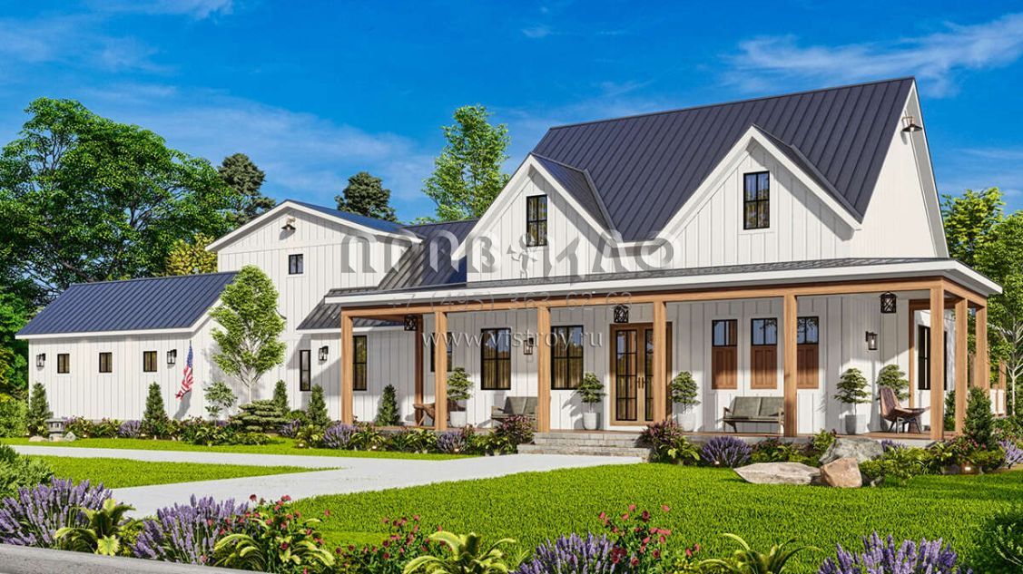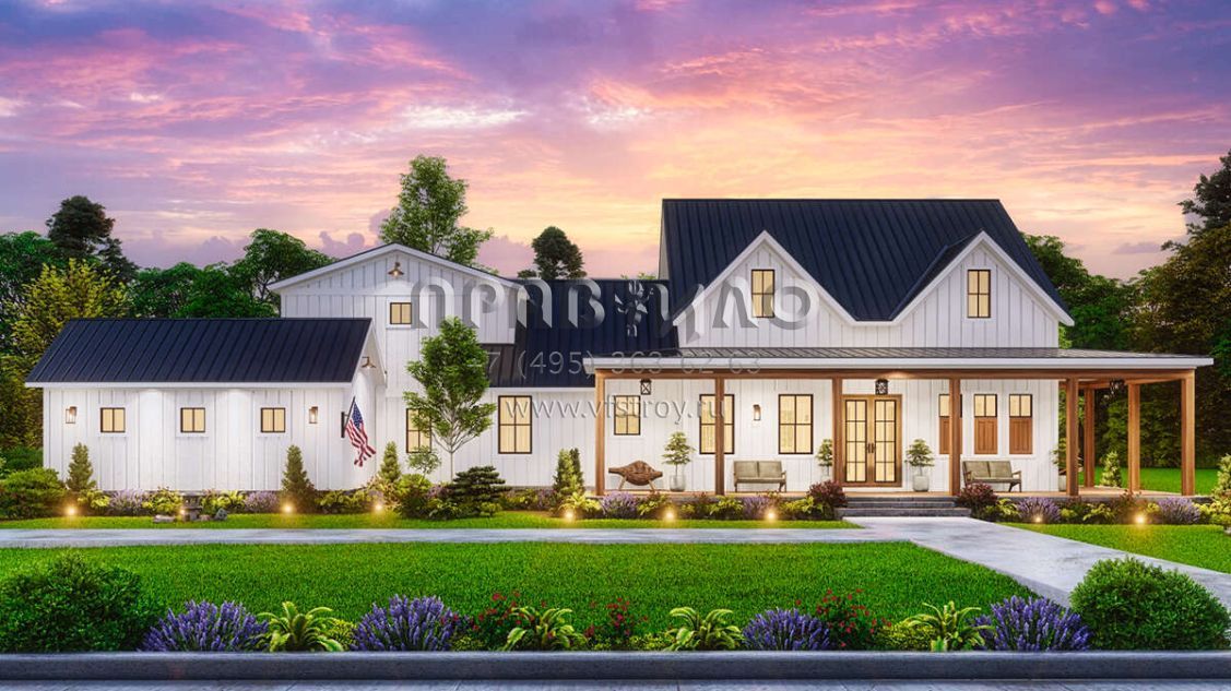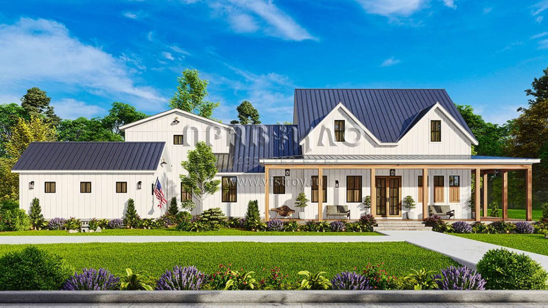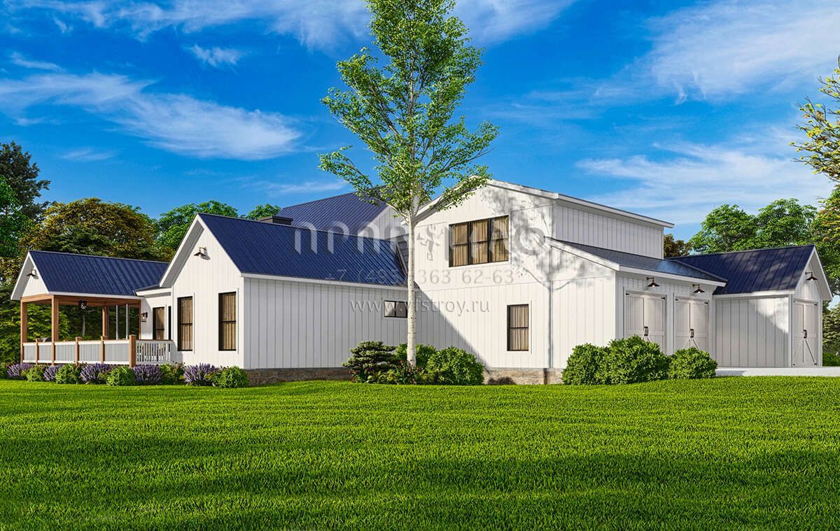 Проект одноэтажного дома с гаражом на три и более машин в современном стиле S5-224 (699-00366)