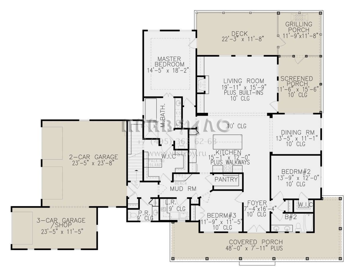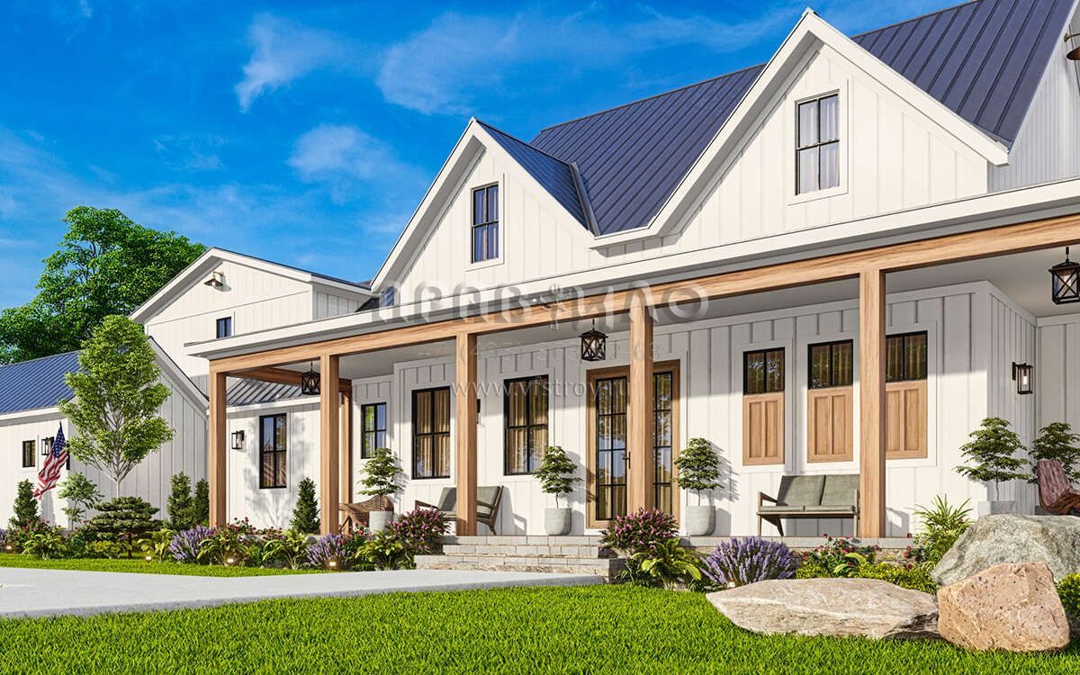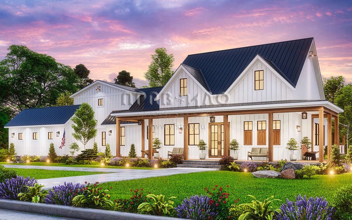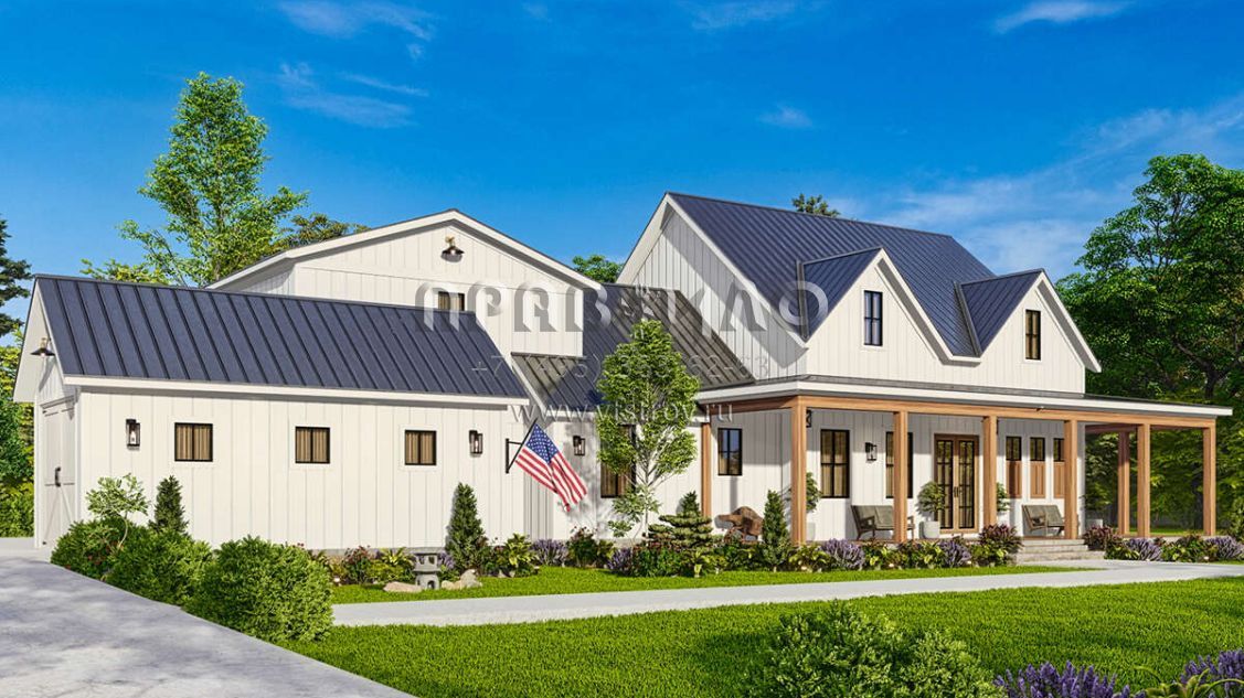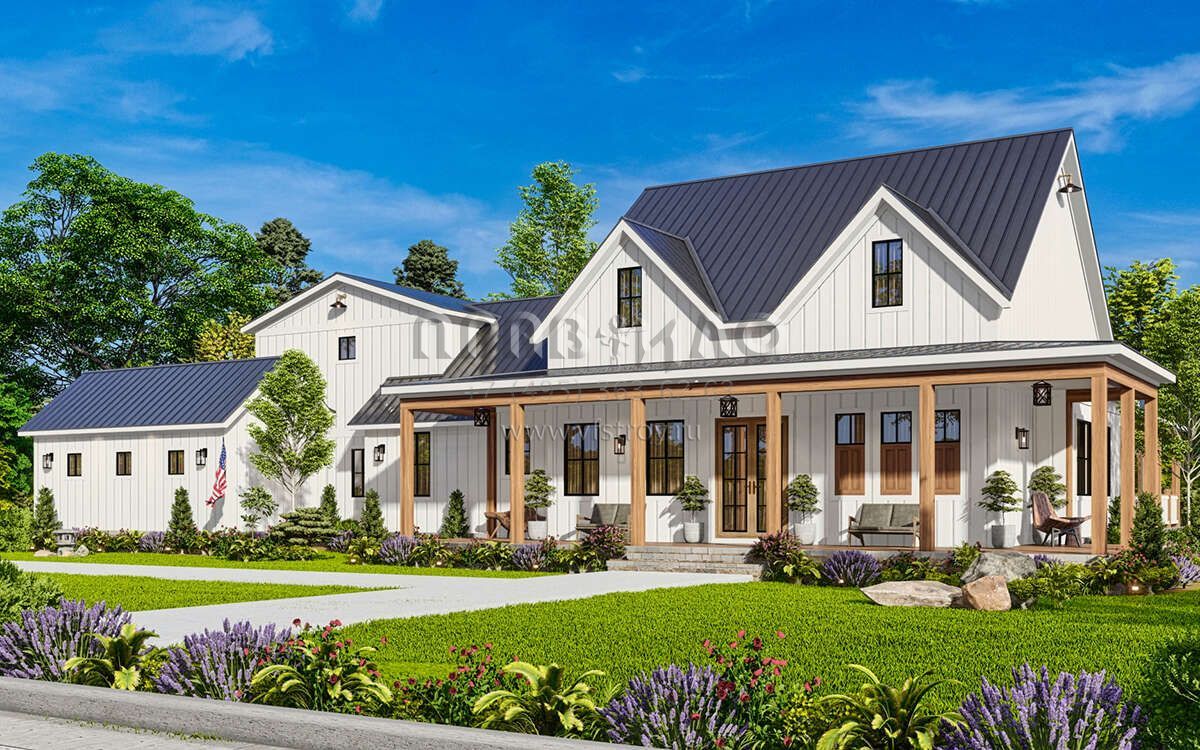 Проект одноэтажного дома с гаражом на три и более машин в современном стиле S5-224 (699-00366)