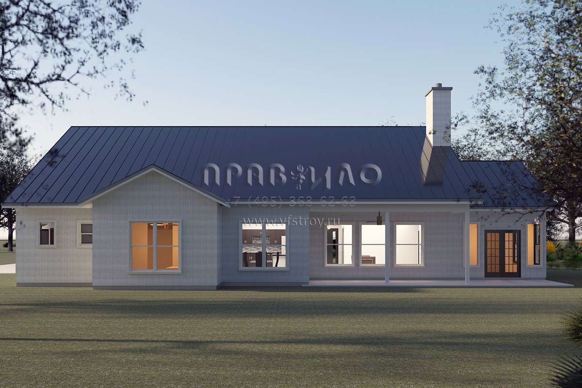 Большая площадь участка позволяет выбрать одноэтажный проект дома, особенно если в семье есть пожилые люди, инвалиды или маленькие дети.