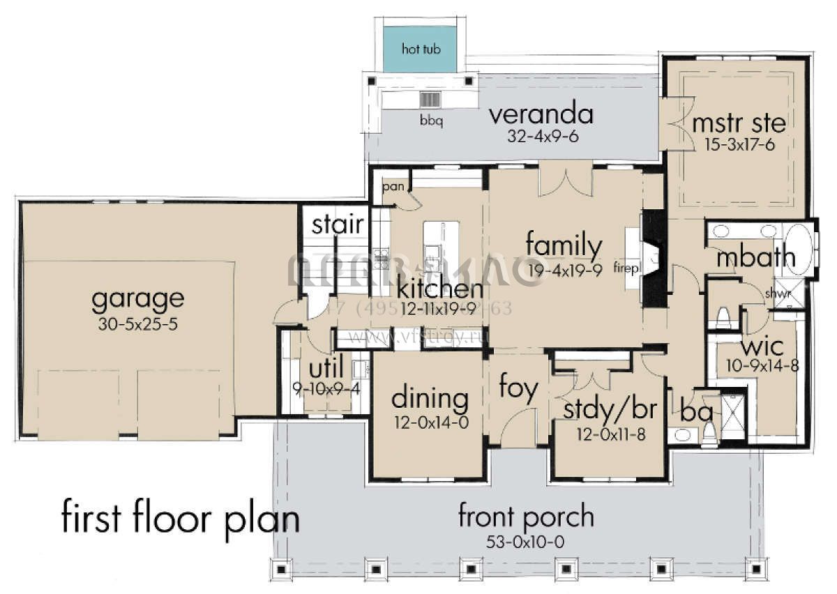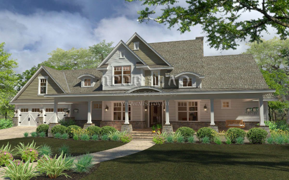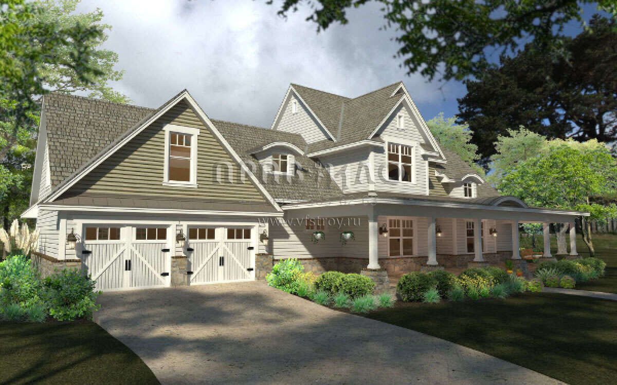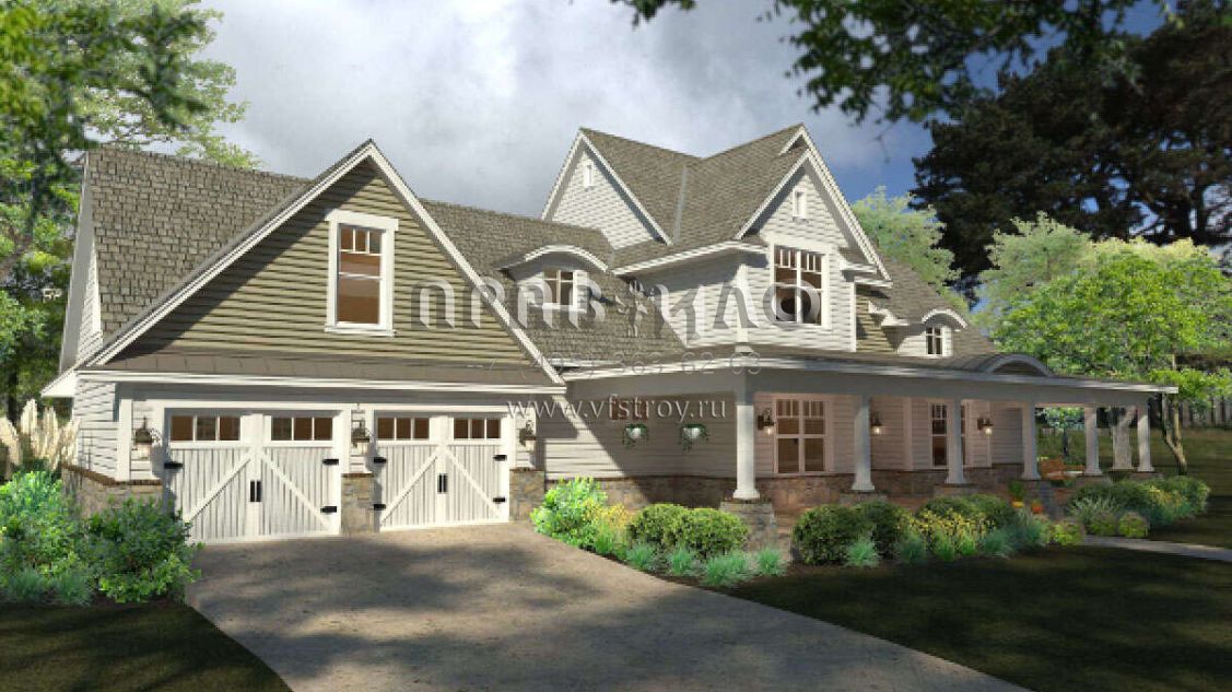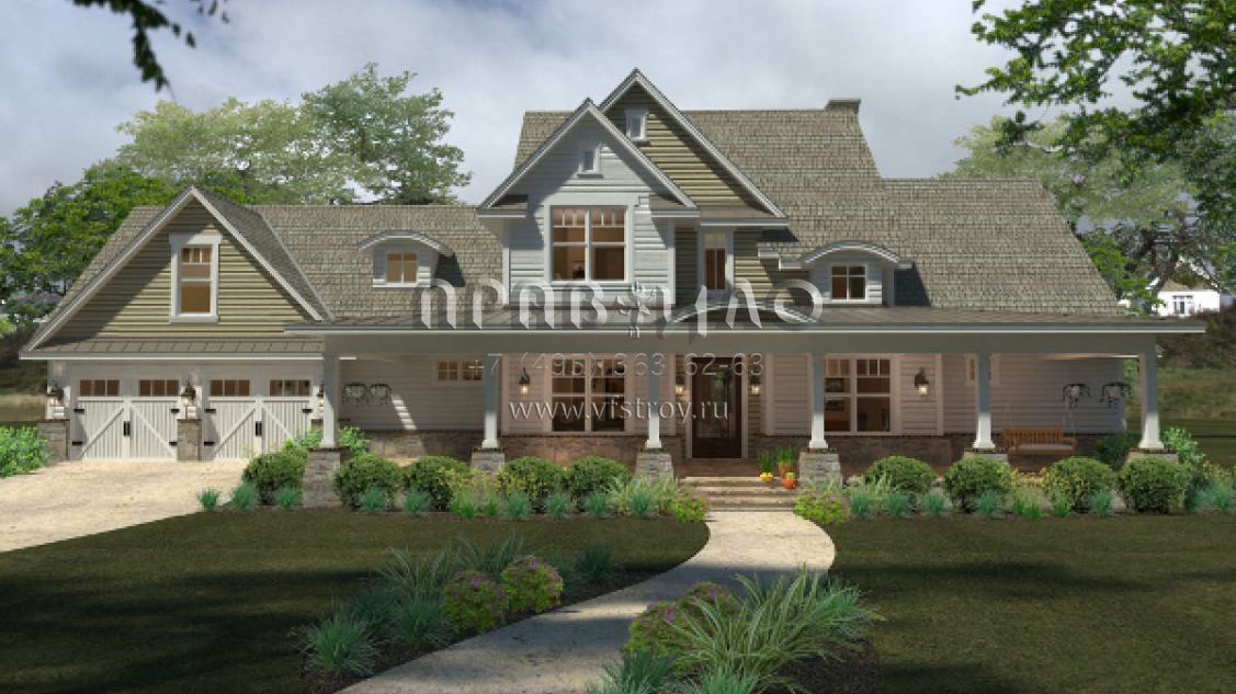 Проект двухэтажного дома с гаражом на две машины в стиле Ранчо S5-224 (9401-00088)