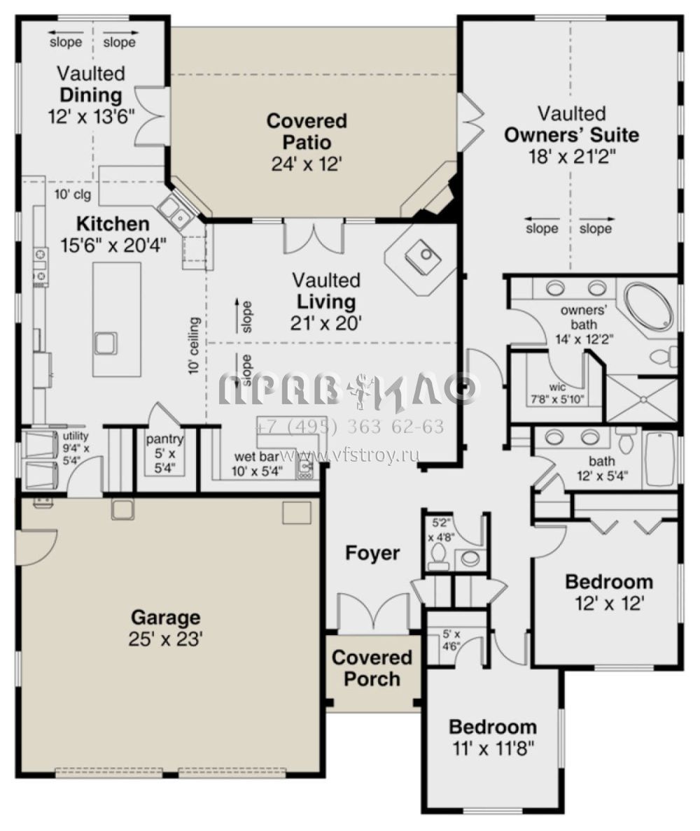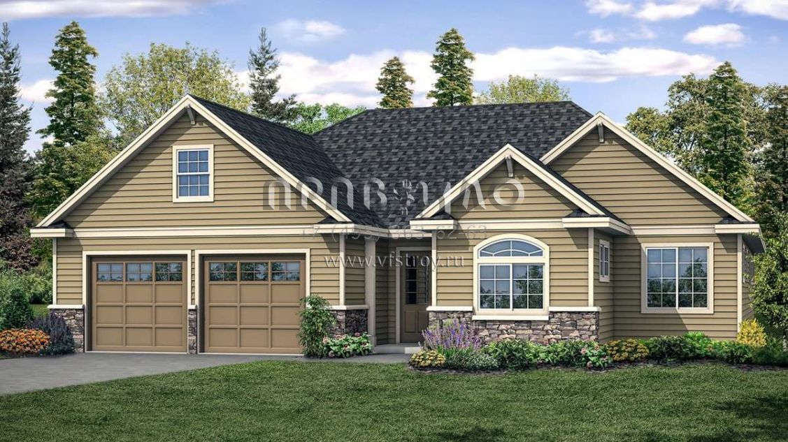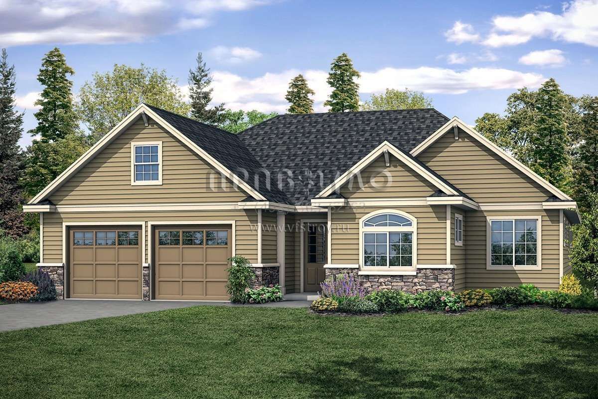 Проект одноэтажного дома с гаражом на две машины в стиле Ранчо S5-225 (035-00830)