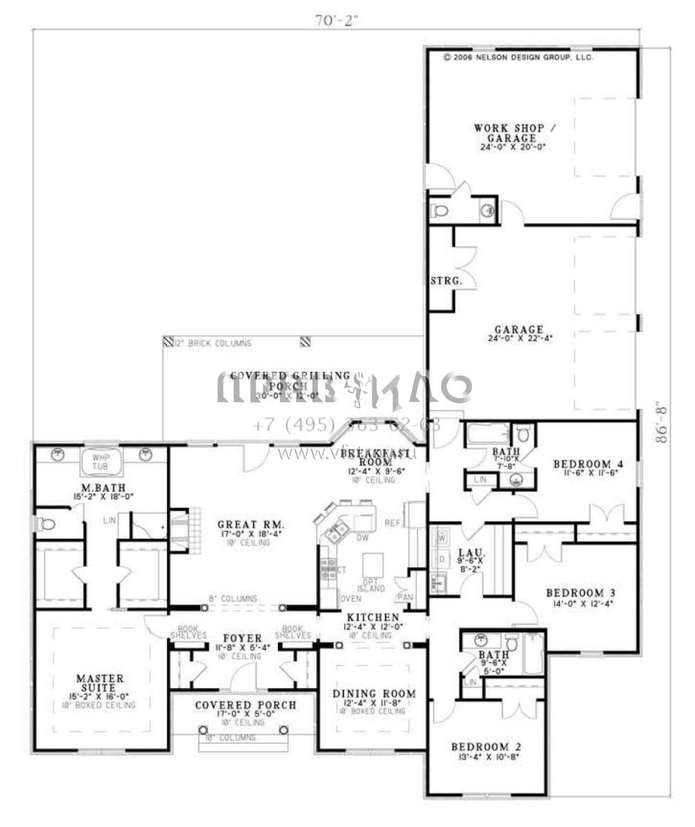 Проект одноэтажного дома с гаражом на три и более машин в стиле Ранчо S5-225 (110-00561)