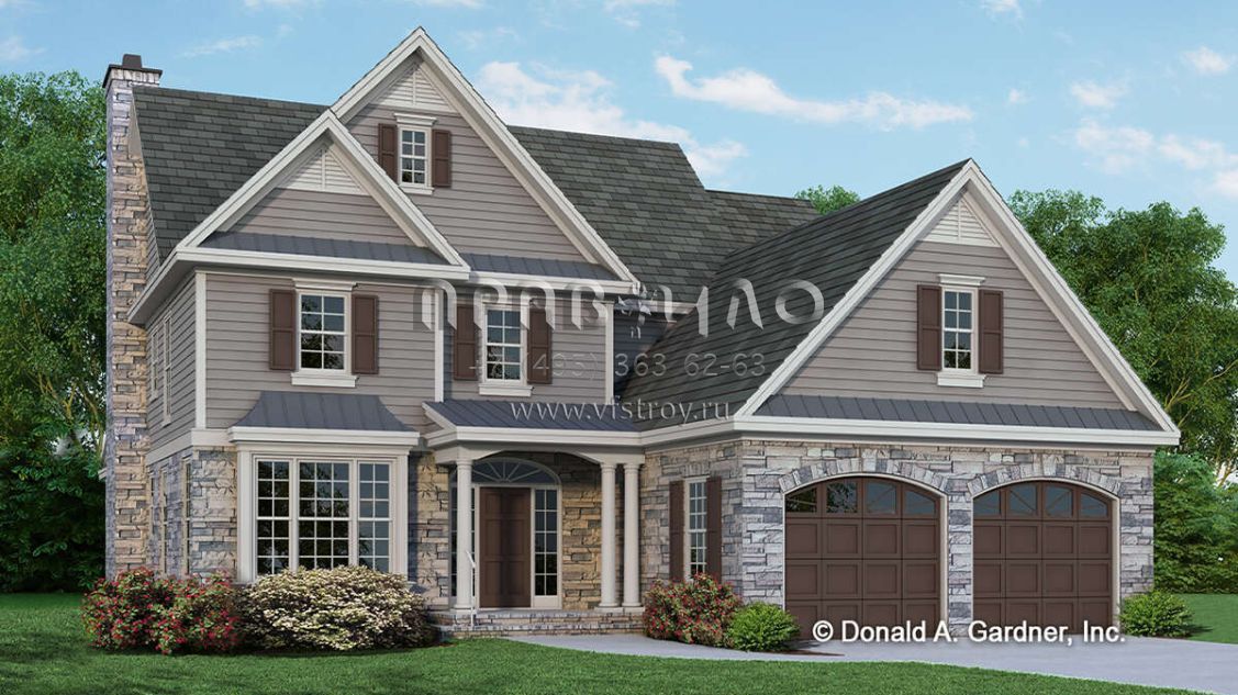 Проект двухэтажного дома с гаражом на две машины в стиле Ранчо S5-225 (2865-00179)