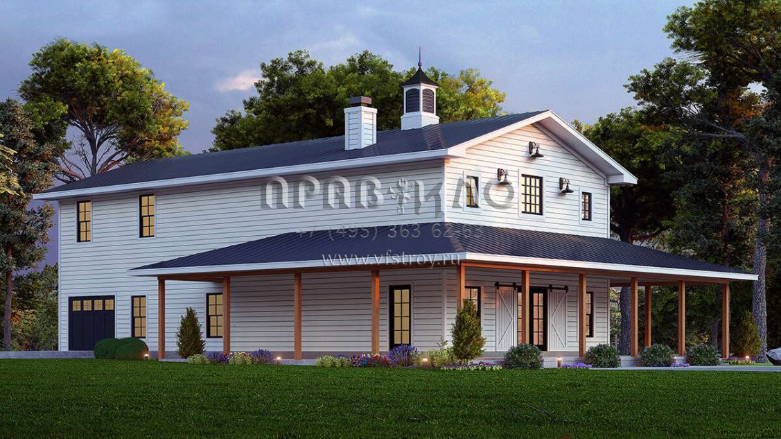 Проект двухэтажного дома с гаражом на одну машину в стиле БарнХаус S5-225 (3367-00074)