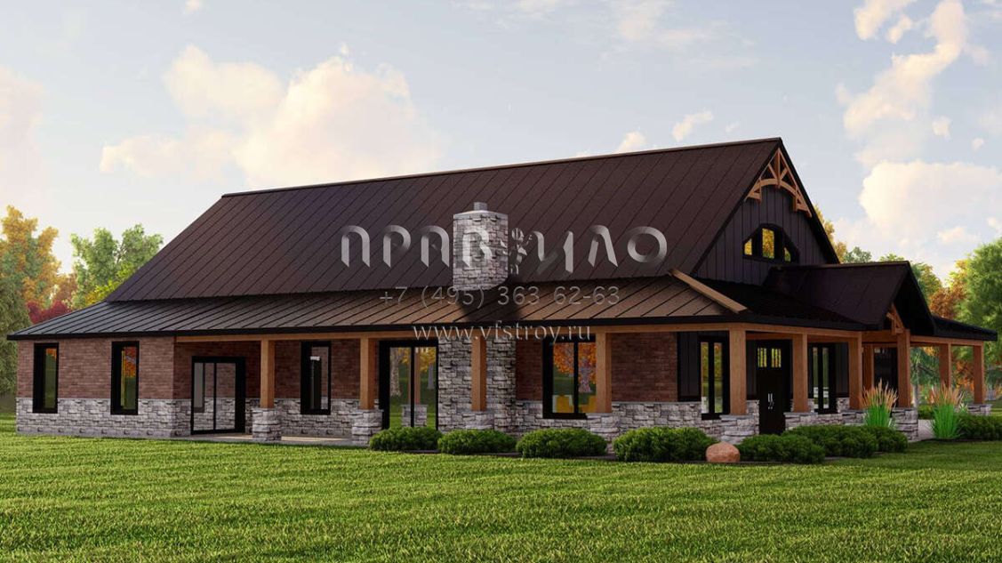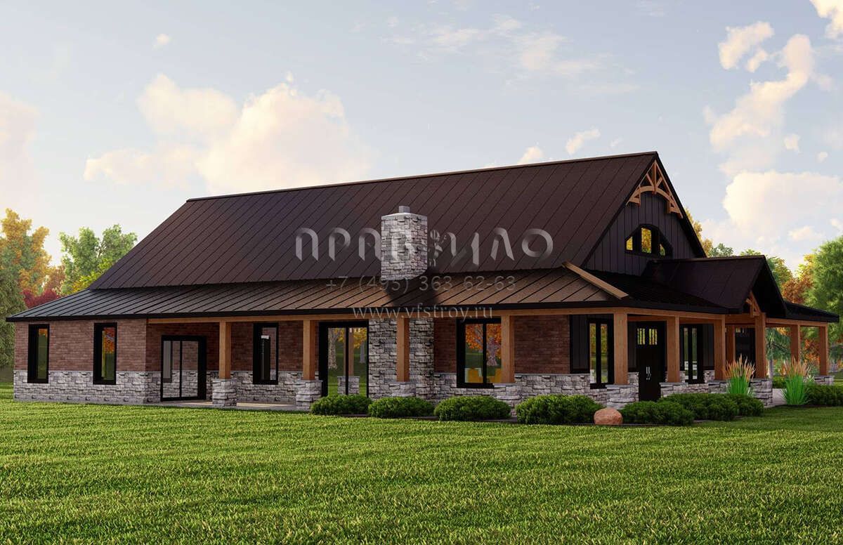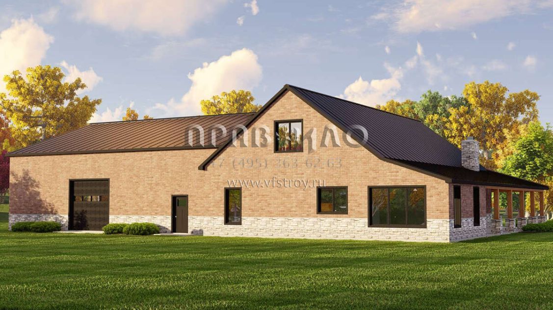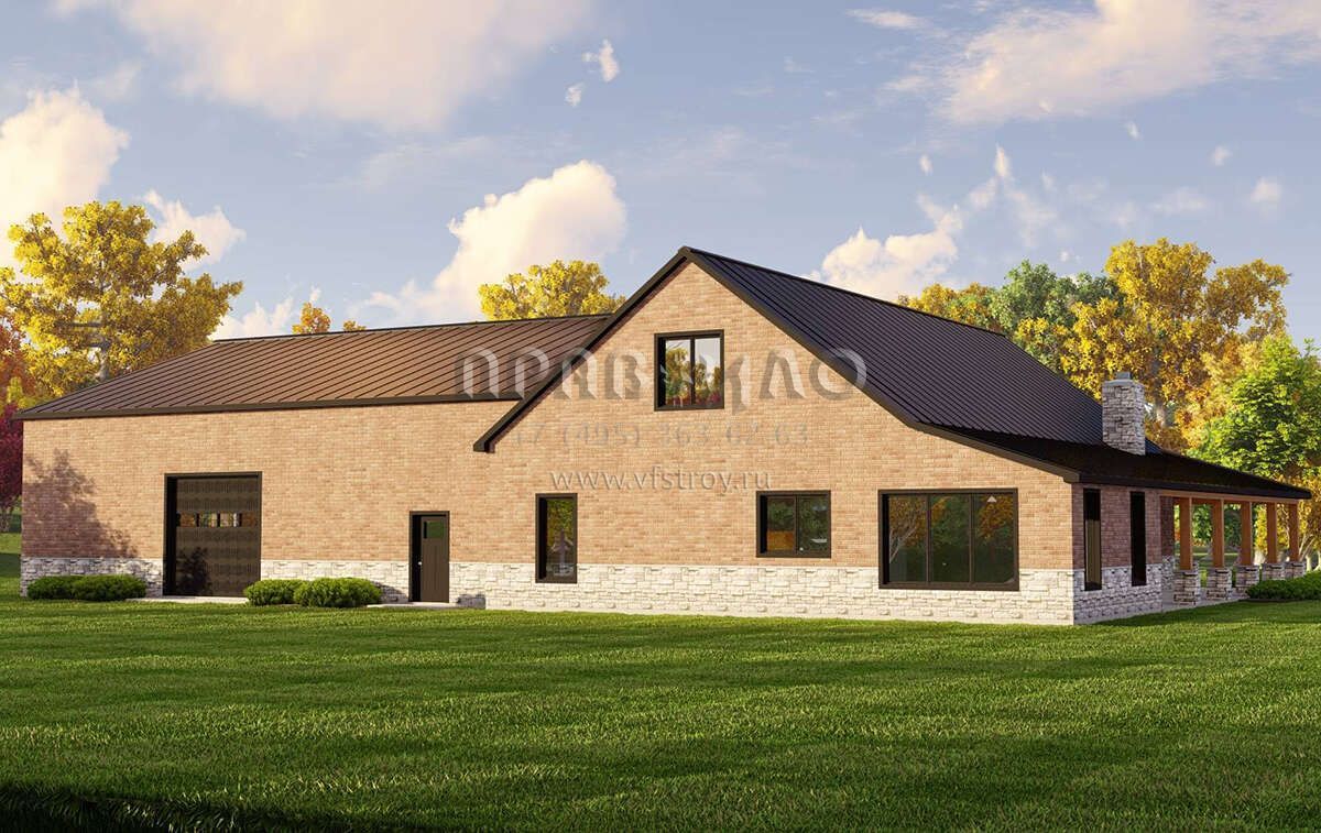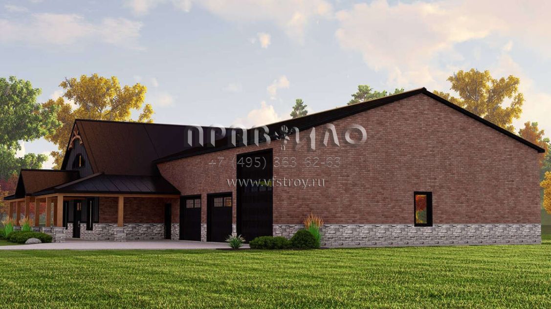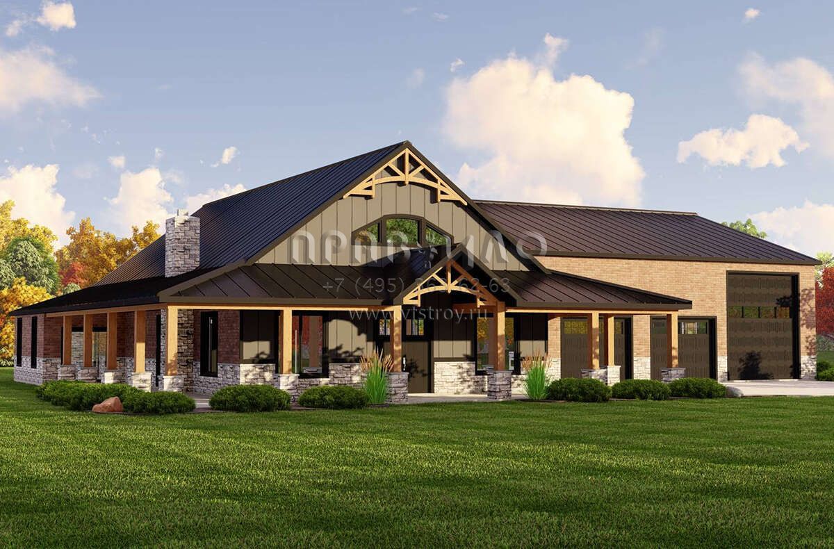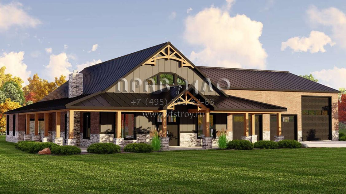 Проект двухэтажного дома с гаражом на три и более машин в стиле БарнХаус S5-225 (5032-00213)