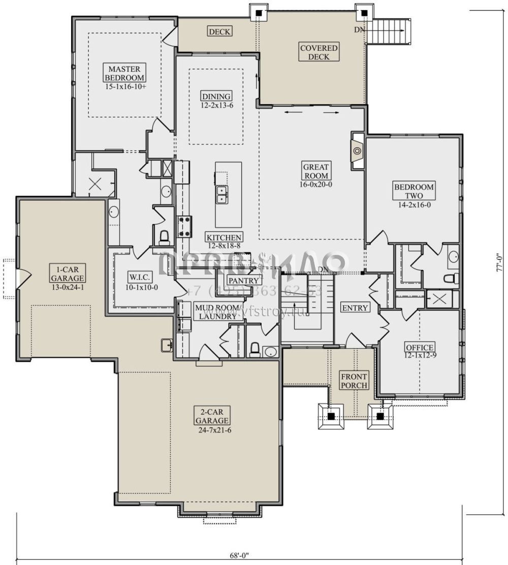 Проект одноэтажного дома с гаражом на три и более машин в американском стиле S5-225 (5631-00097)