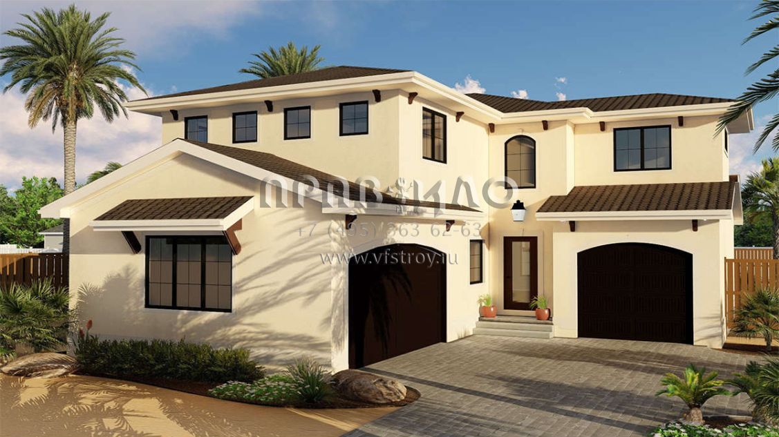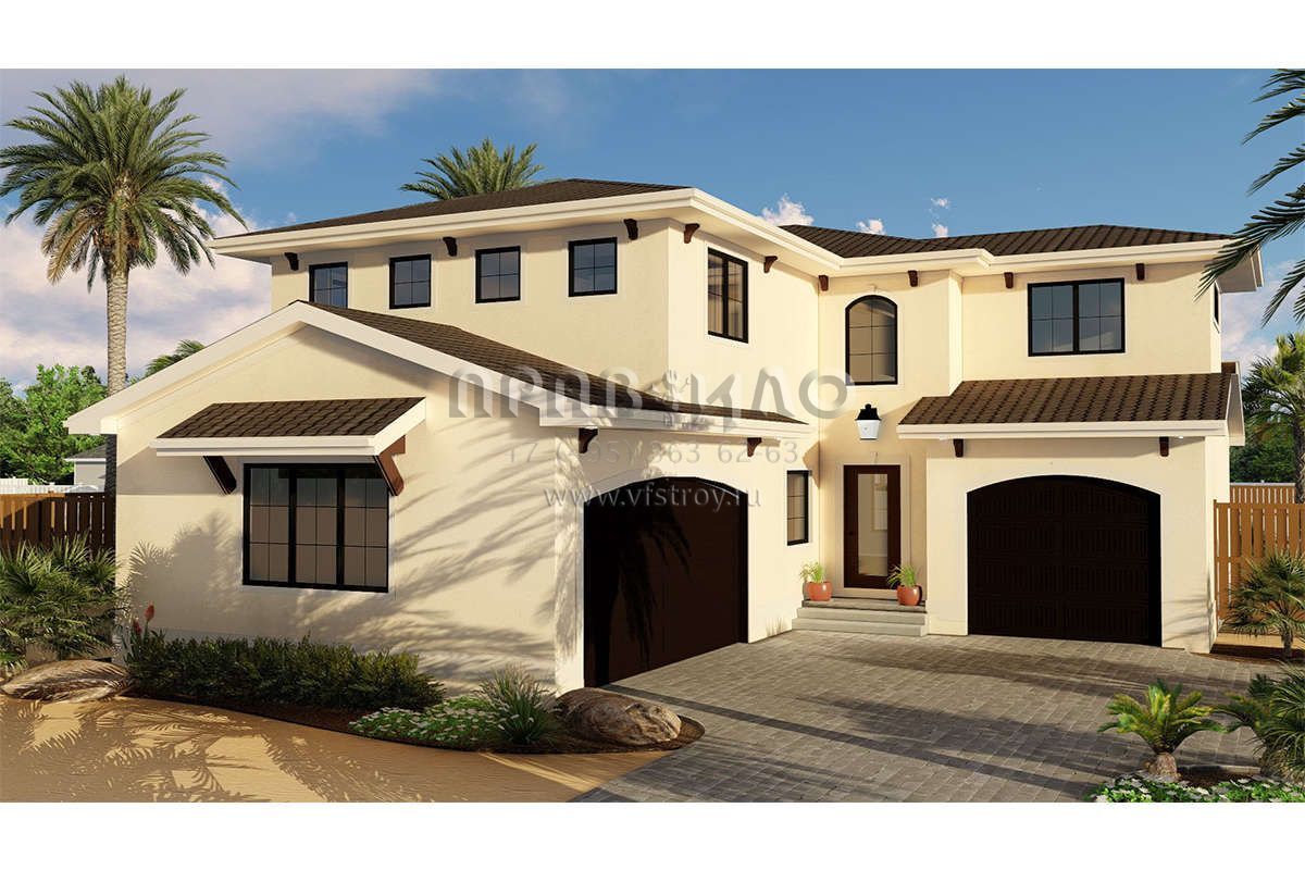 Проект двухэтажного дома с гаражом на три и более машин в прибрежном стиле S5-225 (963-00158)