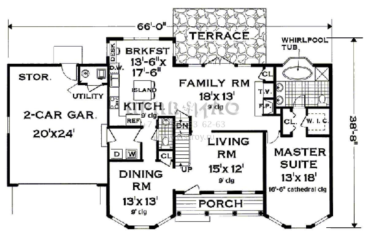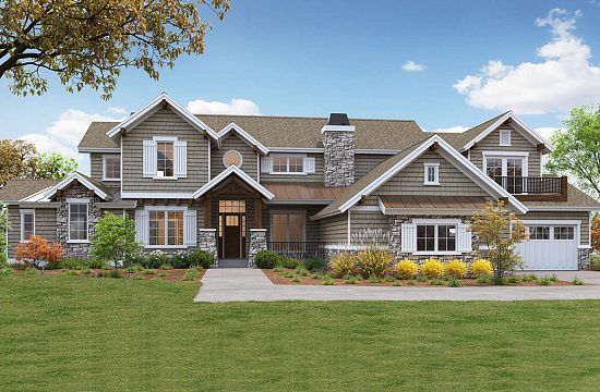 Проект двухэтажного дома с гаражом на две машины в стиле Ранчо S5-226 (033-00119)