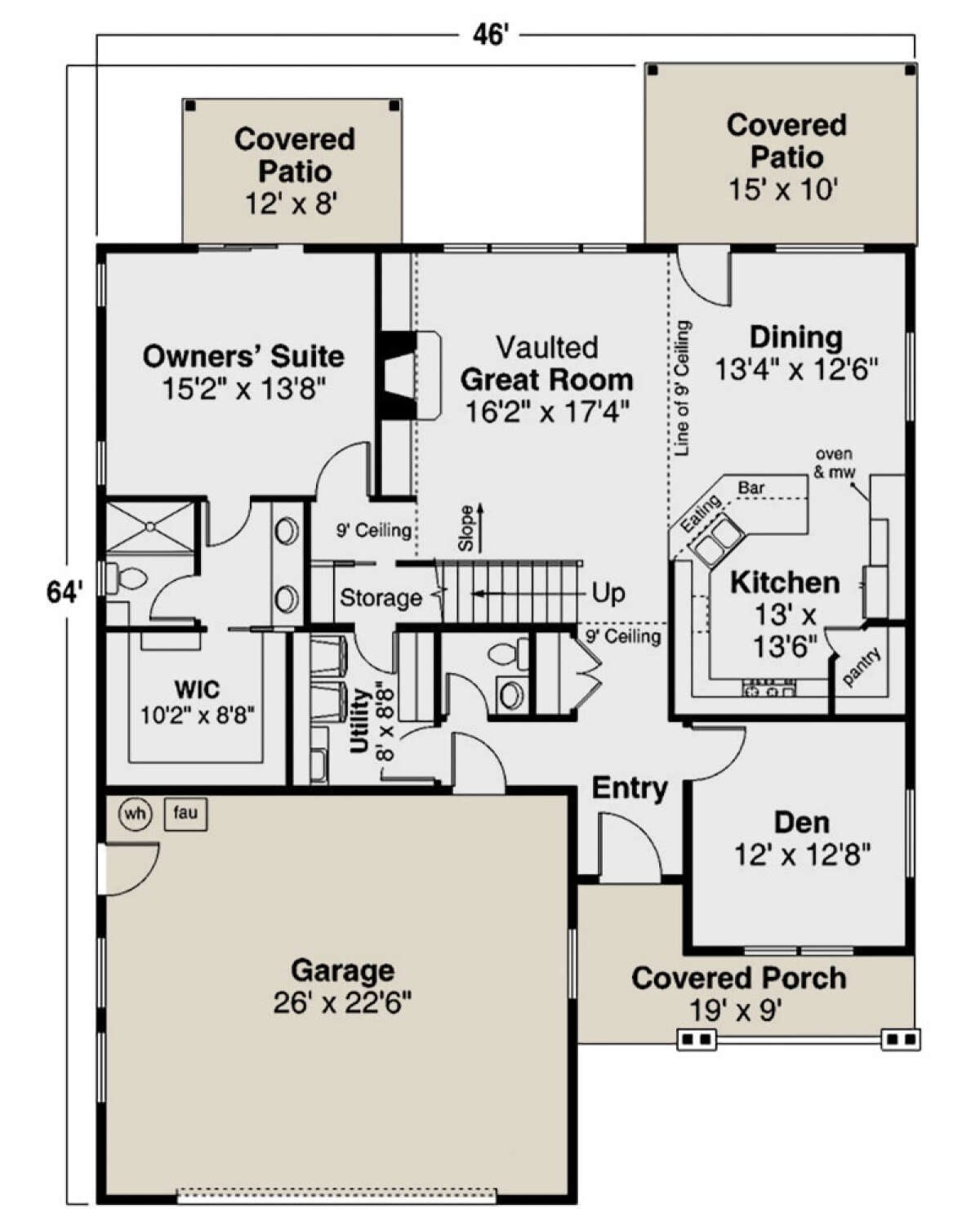 Проект двухэтажного дома с гаражом на две машины в стиле Ранчо S5-226 (035-00877)