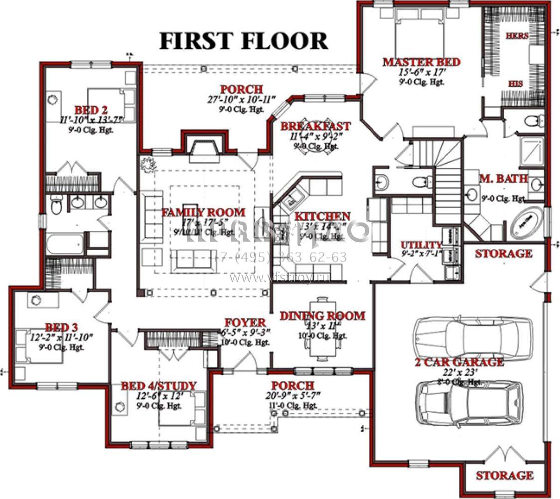 Проект одноэтажного дома с гаражом на две машины в стиле Ранчо S5-226 (1070-00012)