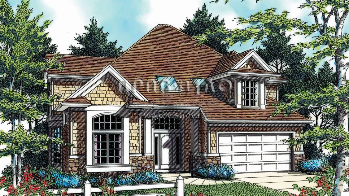 Проект двухэтажного дома с гаражом на две машины в стиле Ранчо S5-226 (2559-00394)