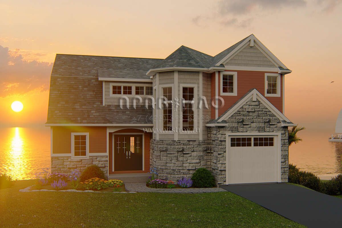 Проект двухэтажного дома с гаражом на одну машину в английском стиле S5-226 (5032-00024)