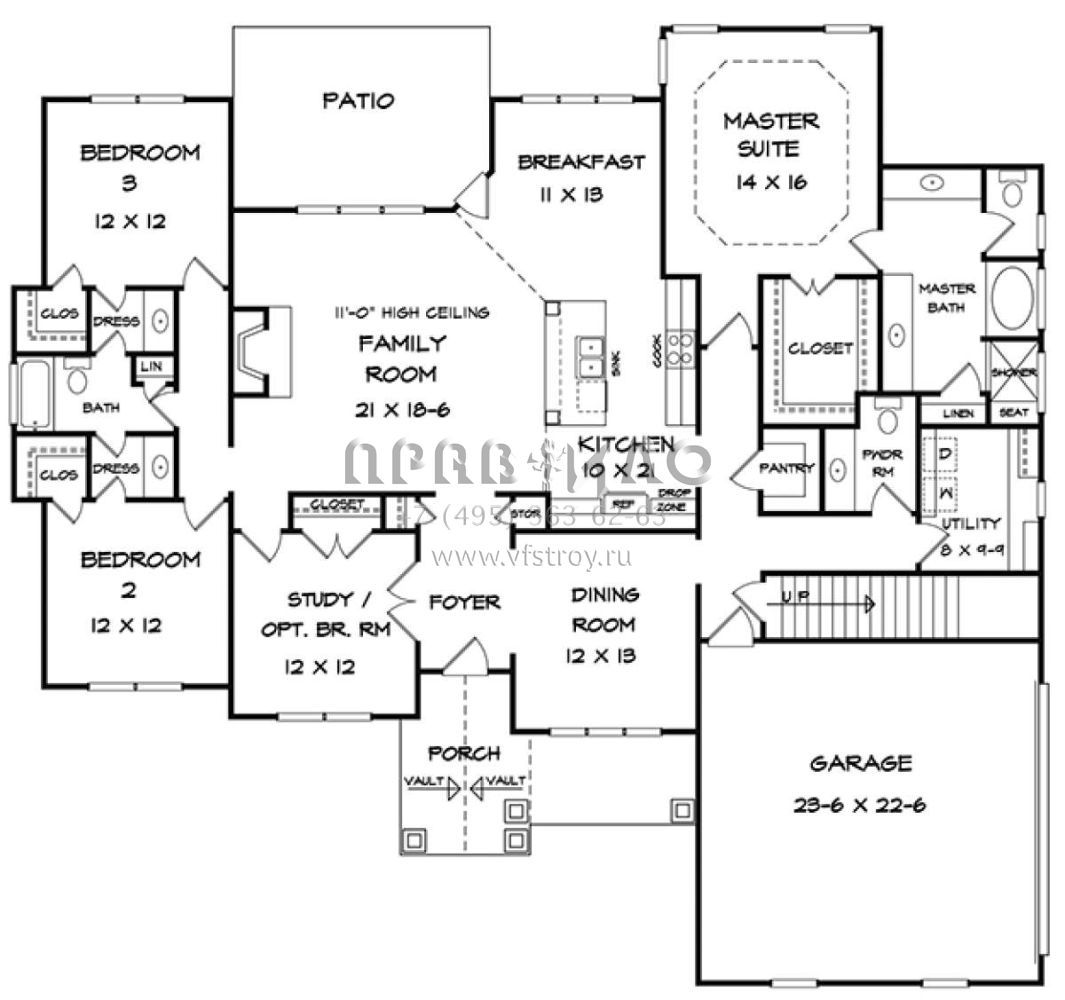 Проект одноэтажного дома с гаражом на две машины в американском стиле S5-226 (6082-00055)