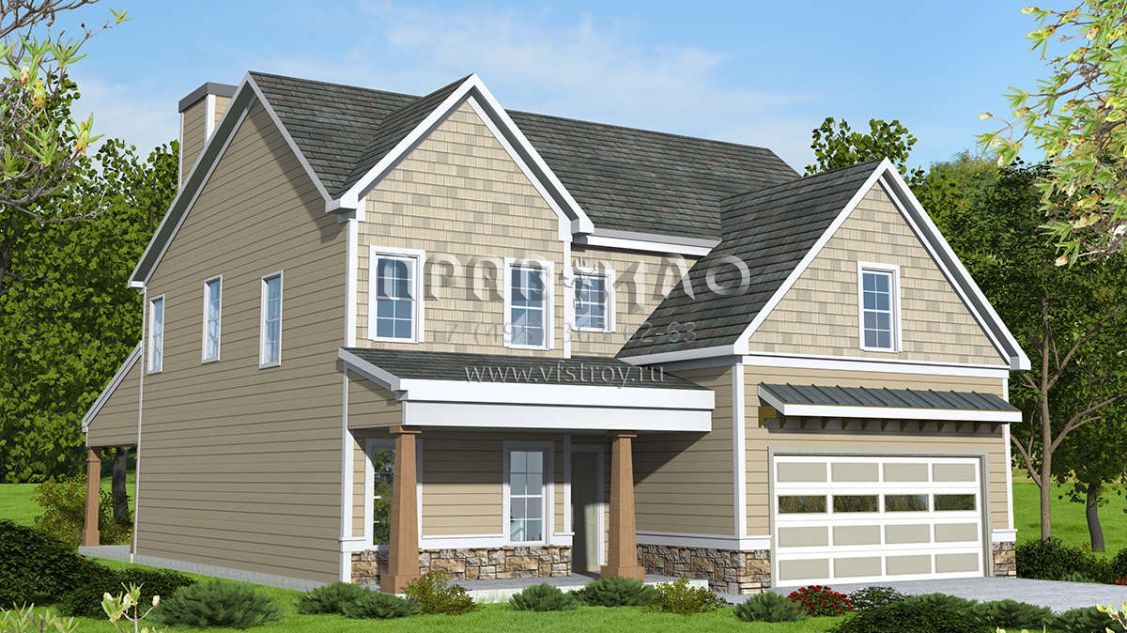 Проект двухэтажного дома с гаражом на две машины в американском стиле S5-226 (6082-00145)