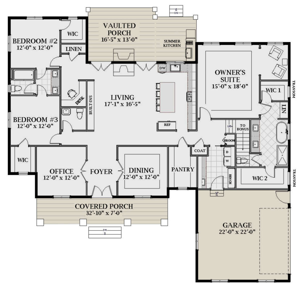 Проект одноэтажного дома с гаражом на две машины в стиле Особняк S5-226 (6849-00096)