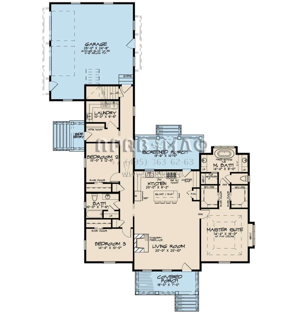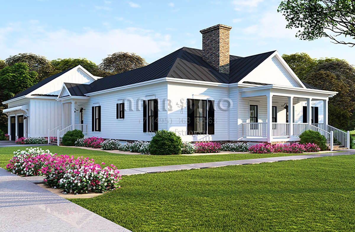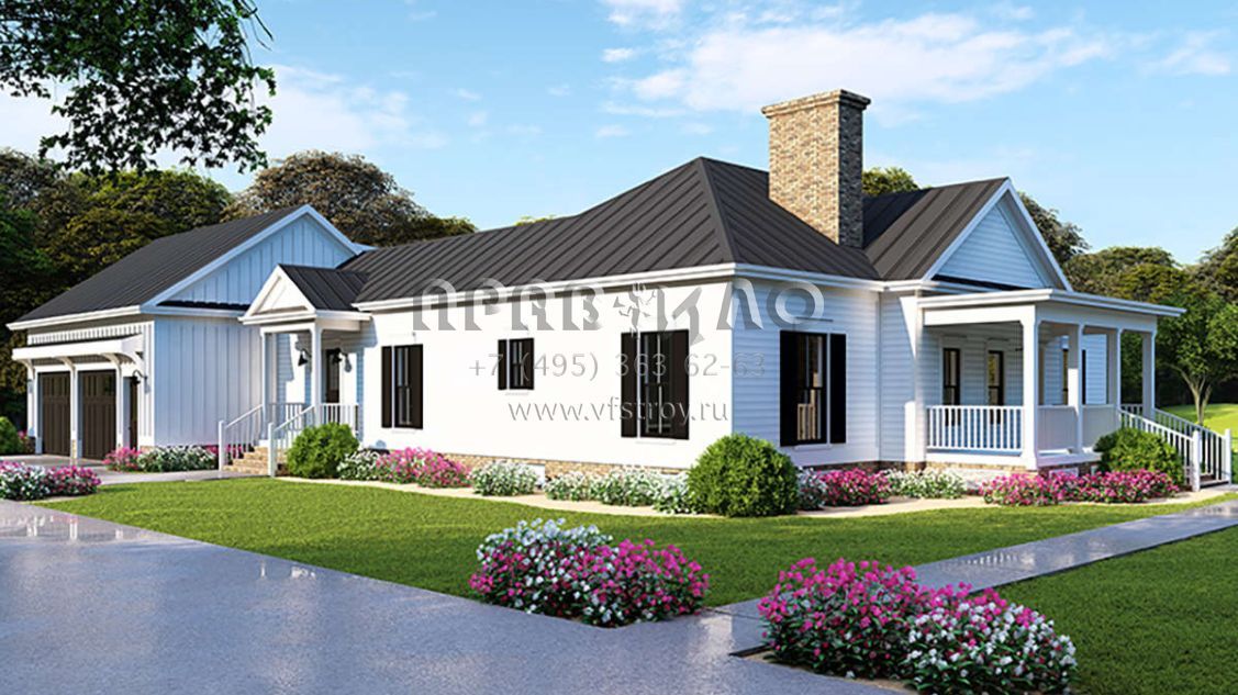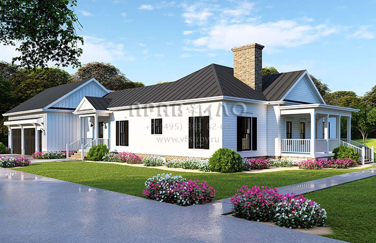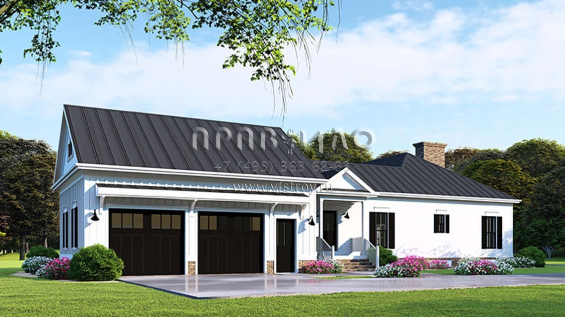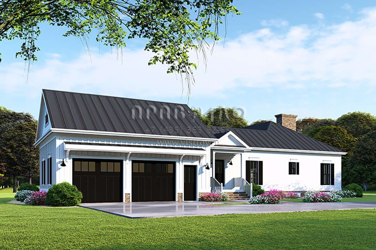 Проект двухэтажного дома с гаражом на две машины в стиле Ранчо S5-226 (8318-00116)