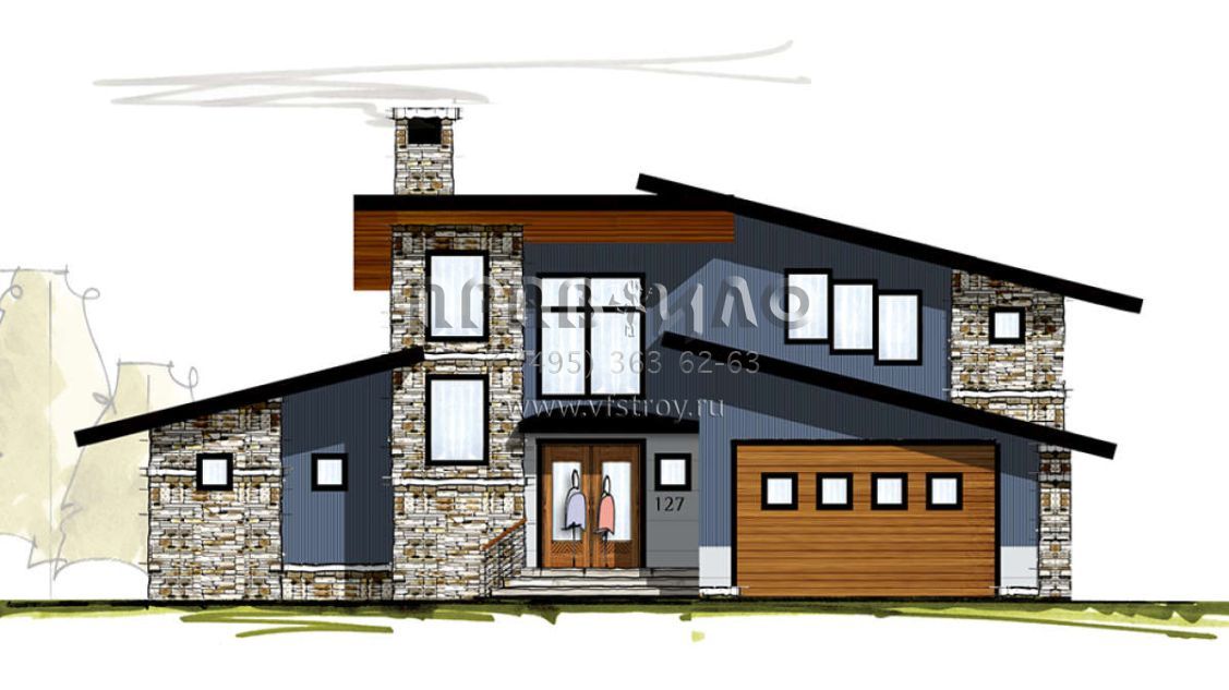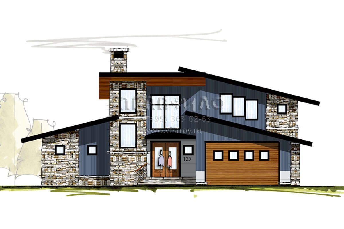 Проект двухэтажного дома с гаражом на две машины в современном стиле S5-226 (8504-00109)