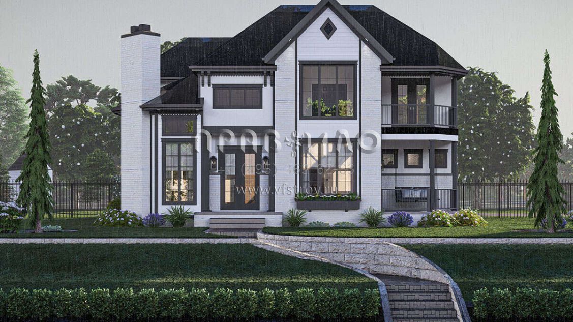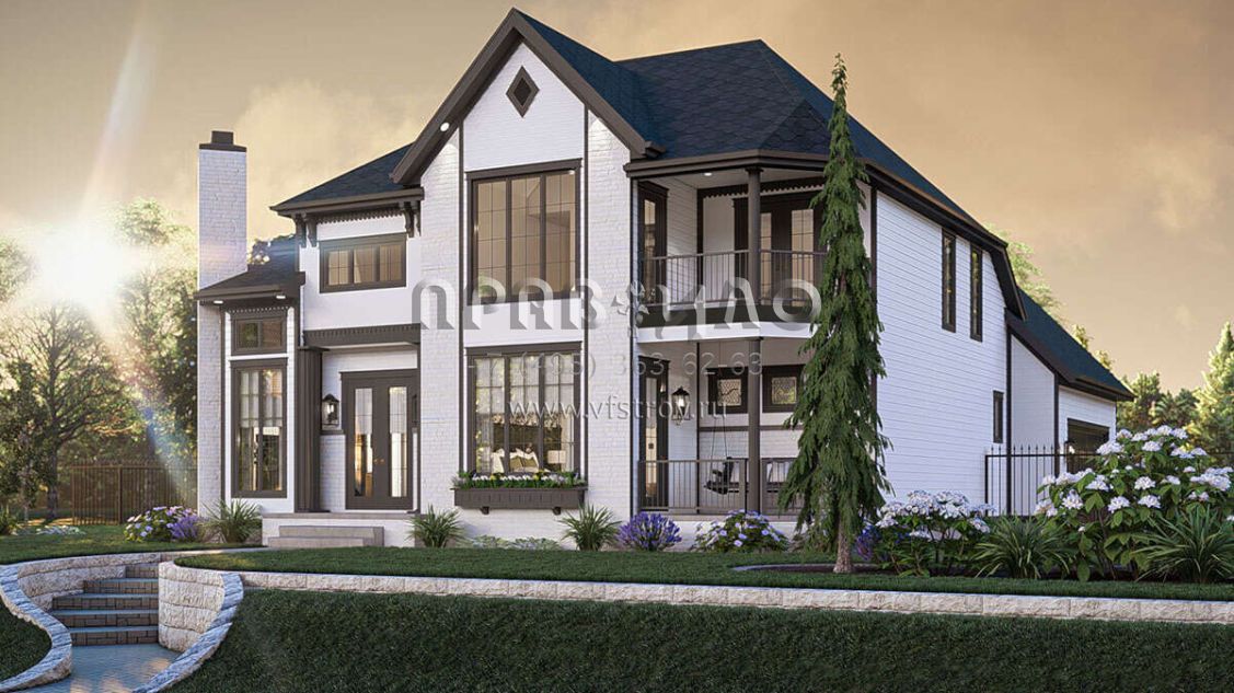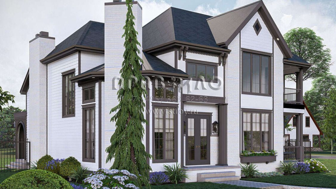 Проект двухэтажного дома с гаражом на две машины в английском стиле S5-226 (963-00886)