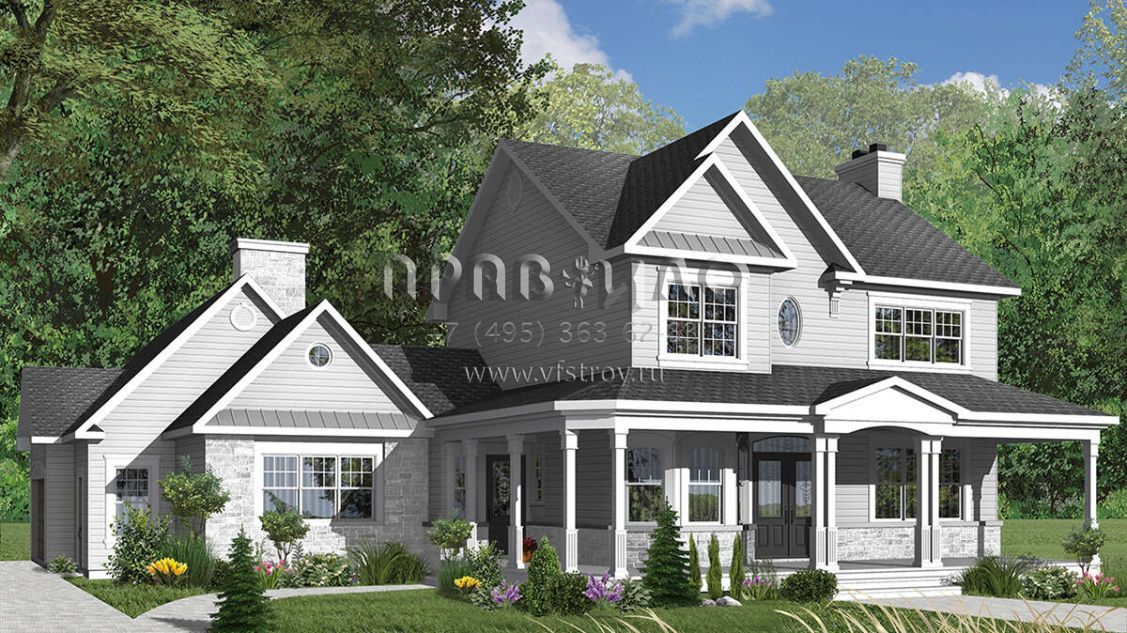 Проект двухэтажного дома с гаражом на три и более машин в английском стиле S5-227 (034-00826)