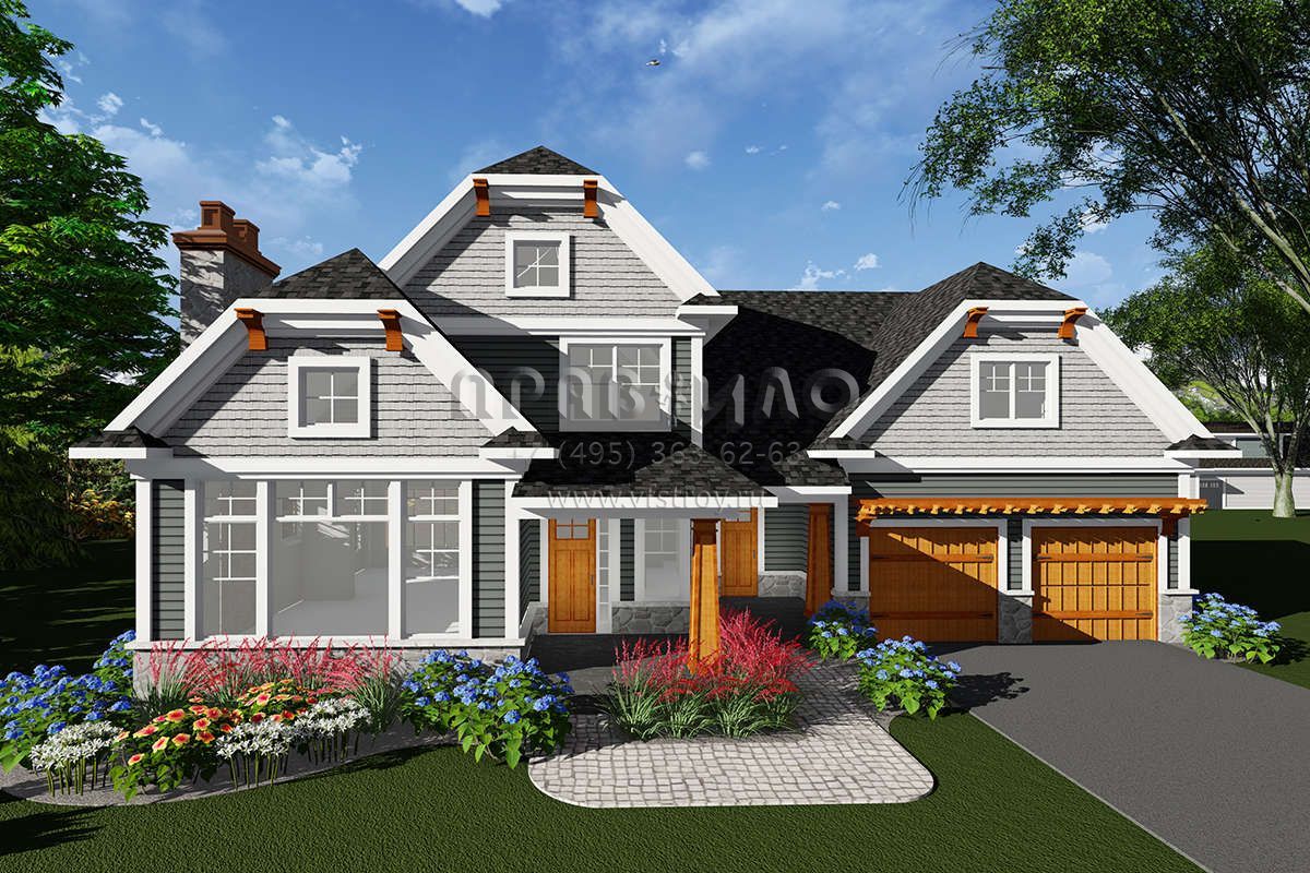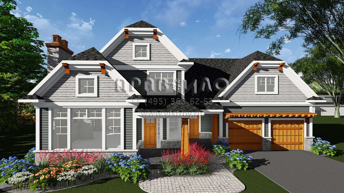 Проект одноэтажного дома с гаражом на две машины в американском стиле S5-227 (1020-00066)