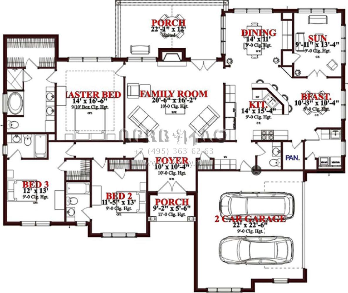 S5-227 (1070-00229) Это иностранный проект, для которого требуется адаптация под нормы, действующие в Российской Федерации. Вы видите проект дома в стиле Ранчо. В этом доме сочетаются черты сельской постройки и аскетичность лофта. Внутри жильцы смогут проводить время с максимальным комфортом. Обратим внимание, что сейчас на планировках все размеры представлены в футах. Для перевода в метры вам необходимо значение в футах умножить на 0,3048.