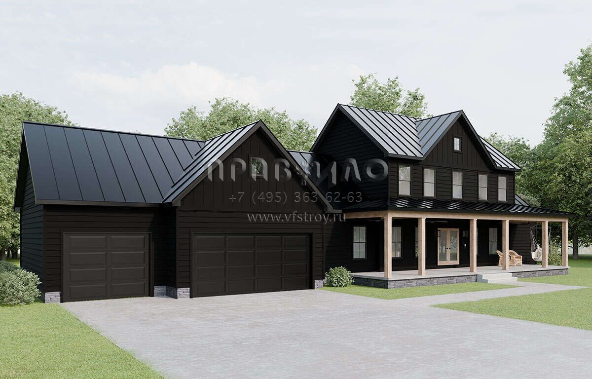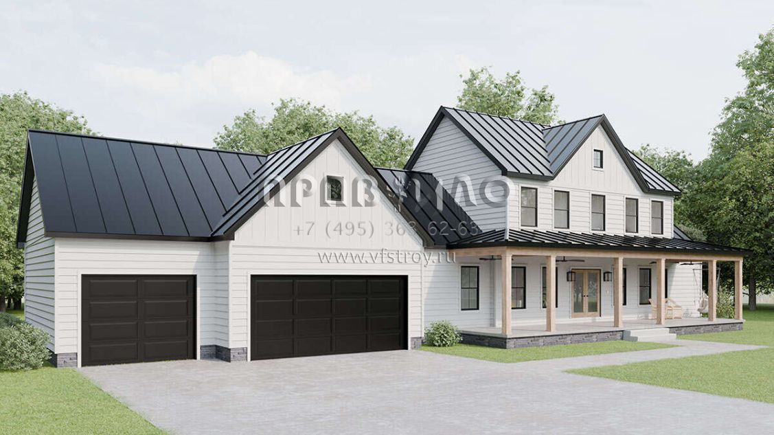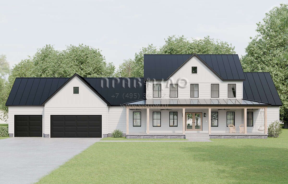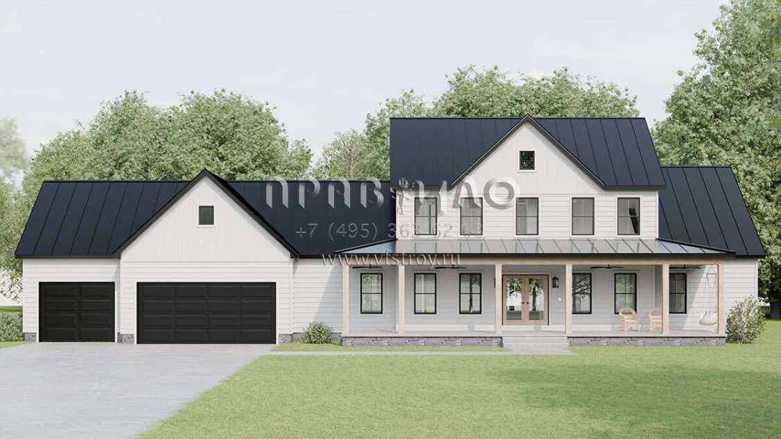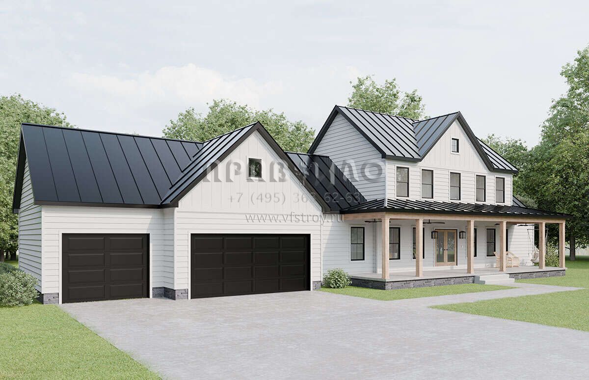 Проект двухэтажного дома с гаражом на три и более машин в современном стиле S5-227 (1958-00028)