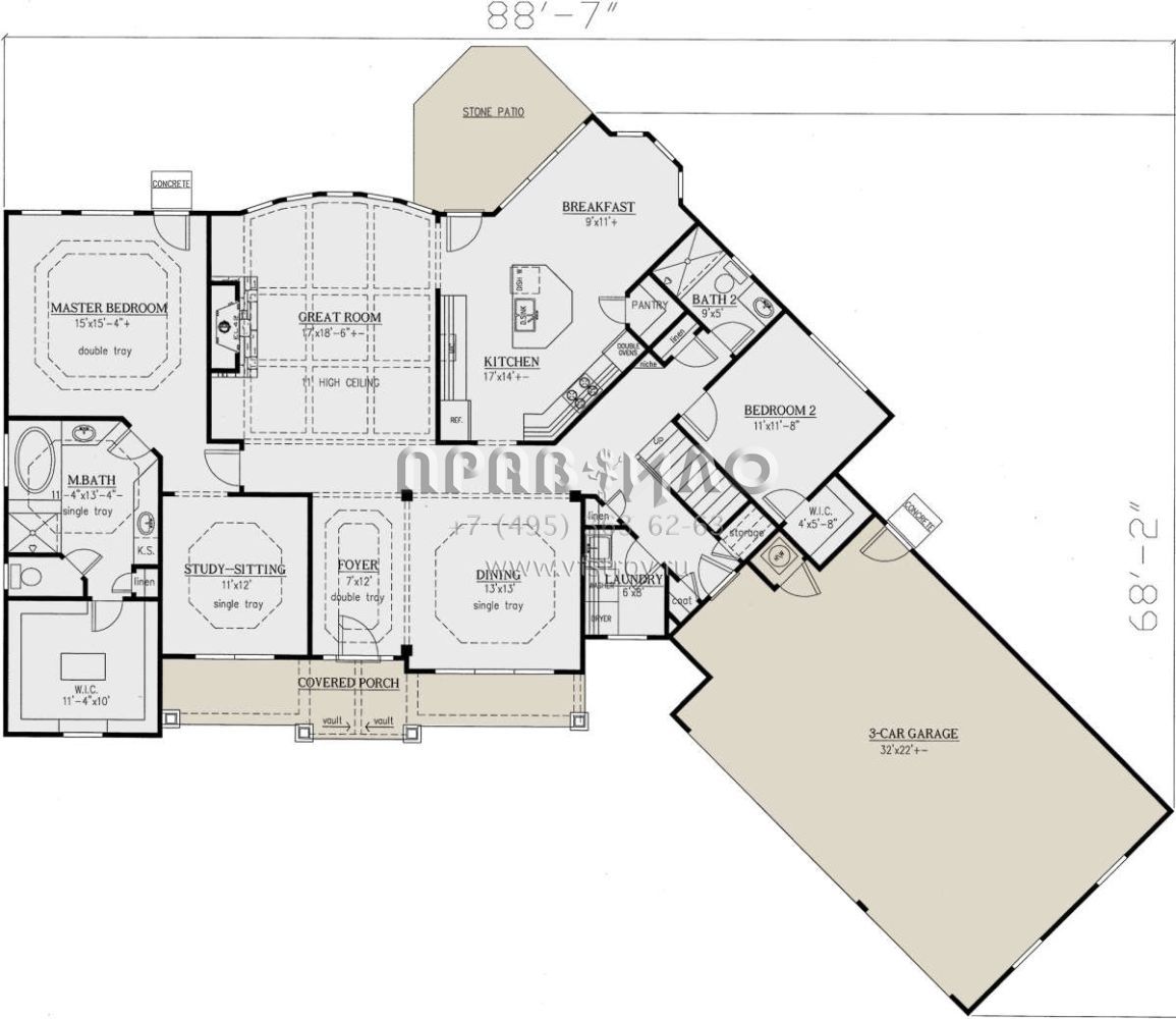 Проект двухэтажного дома с гаражом на три и более машин в американском стиле S5-227 (286-00099)