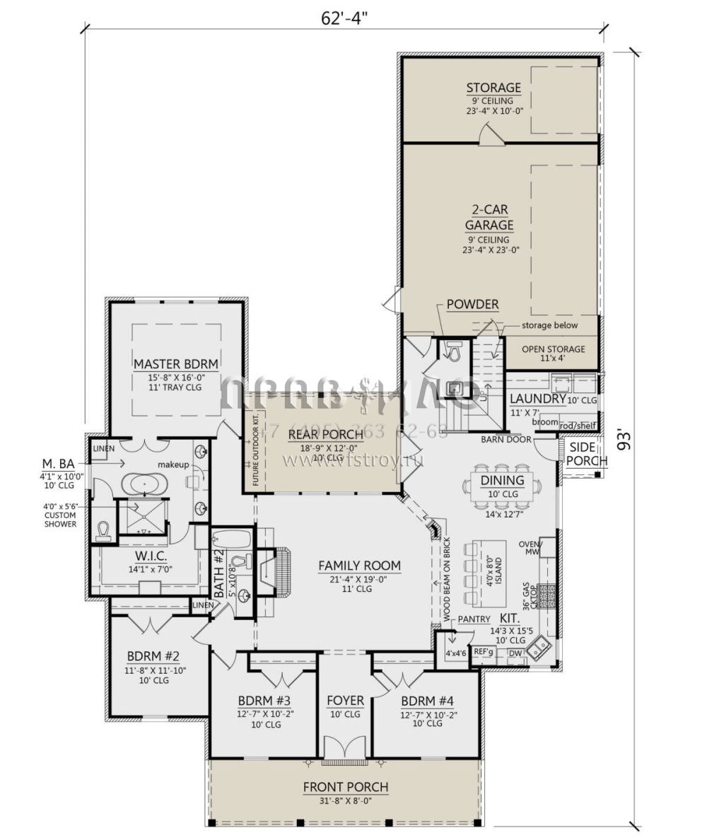 Проект одноэтажного дома с гаражом на две машины в стиле Ранчо S5-227 (4534-00032)