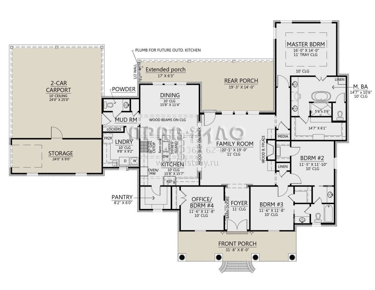 Проект одноэтажного дома с гаражом на две машины в стиле Ранчо S5-227 (4534-00033)