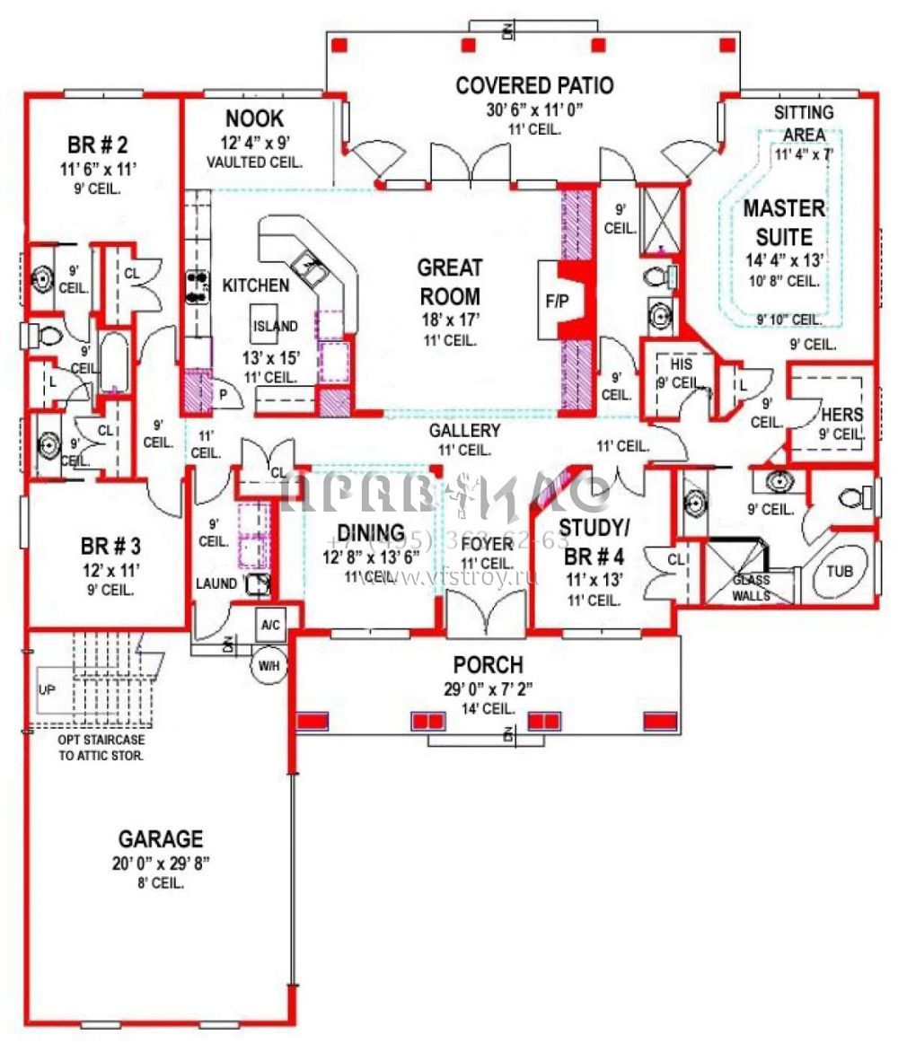 Проект одноэтажного дома с гаражом на две машины в стиле Ранчо S5-227 (4766-00168)