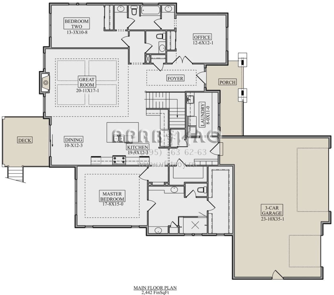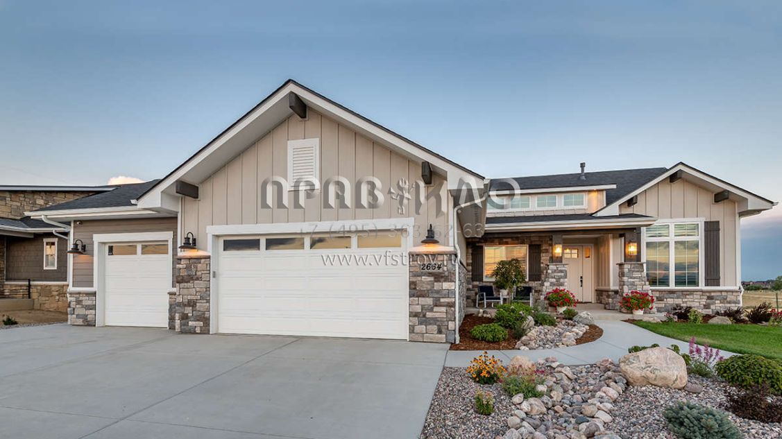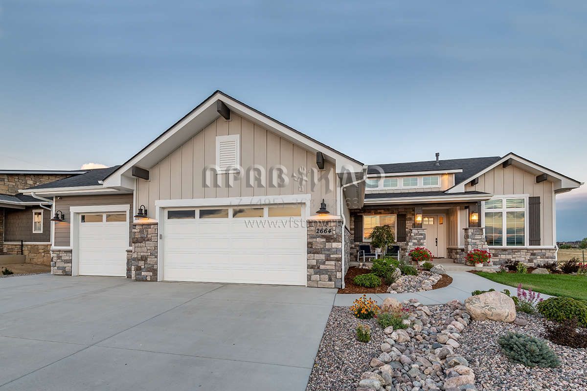 Проект одноэтажного дома с гаражом на три и более машин в американском стиле S5-227 (5631-00104)