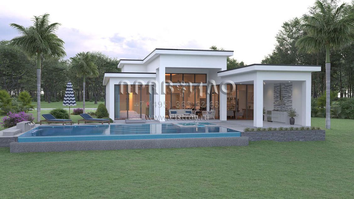 Большая площадь участка позволяет выбрать одноэтажный проект дома, особенно если в семье есть пожилые люди, инвалиды или маленькие дети.