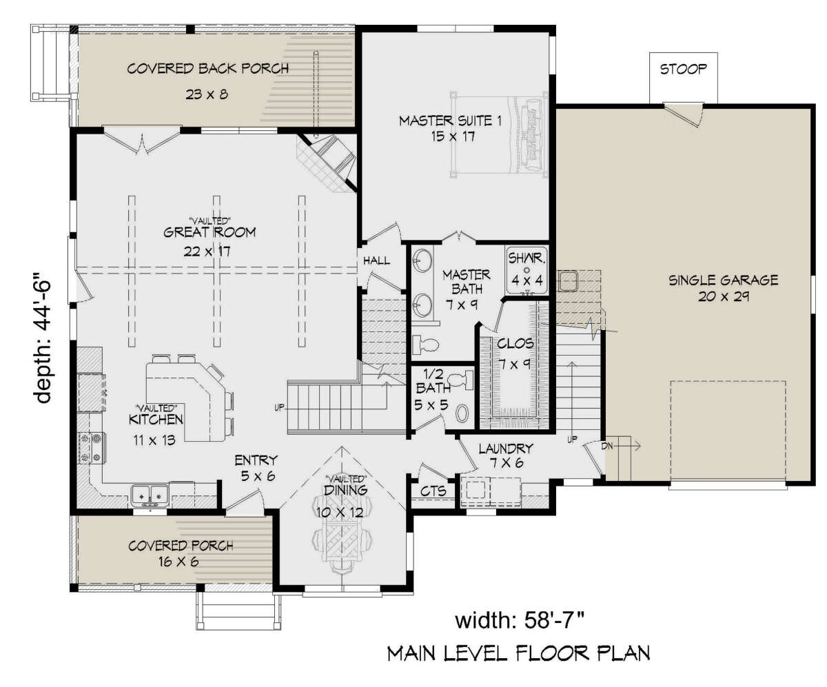 Проект двухэтажного дома с гаражом на одну машину в стиле Ранчо S5-227 (940-00200)